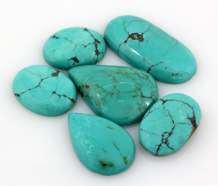 Turquoise 128.00ctw MixShape&Sizes LooseGemstone **|**|** 6 pcs Charming Genuine Turquoise Cabochons Loose Gemstone in Various Sizes and Shape ; MSRP: $400