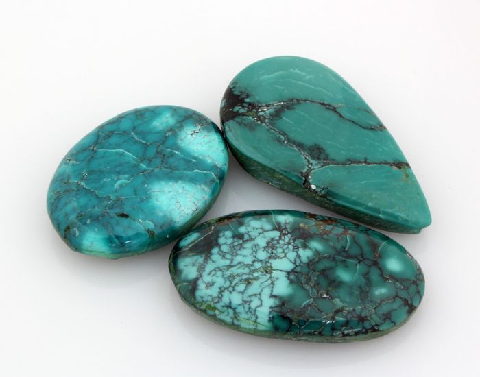 Turquoise 129.00ctw MixShape&Sizes LooseGemstone **|**|** 3 pcs Charming Genuine Turquoise Cabochons Loose Gemstone in Various Sizes and Shape ; MSRP: $400