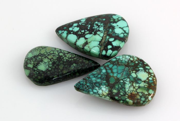 Turquoise 134.50ctw Pear Cut Loose Gemstone **|**|** 3 pcs Charming Genuine Big Turquoise Cabochons Loose Gemstone in Pear Shape and Various Sizes ; MSRP: $400