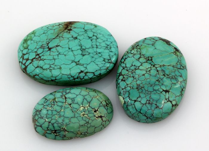 Turquoise 136.00ctw OvalCut LooseGemstone **|**|** 3 pcs Charming Genuine Turquoise Cabochons Loose Gemstone in Various Sizes and Shape ; MSRP: $400