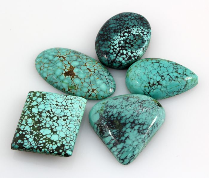 Turquoise 150.79ctw MixShape&Sizes LooseGemstone **|**|** 5 pcs Charming Genuine Turquoise Cabochons Loose Gemstone in Various Sizes and Shape ; MSRP: $500