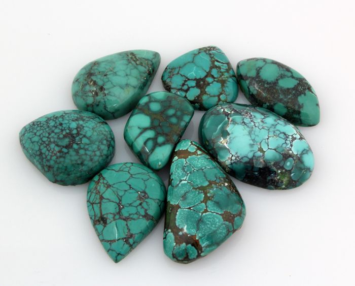 Turquoise 150.85ctw MixShape&Sizes LooseGemstone **|**|** 8 pcs Charming Genuine Turquoise Cabochons Loose Gemstone in Various Sizes and Shape ; MSRP: $500