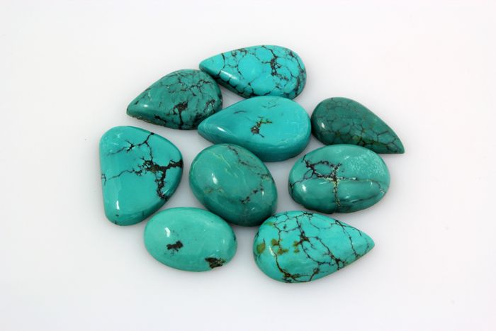 Turquoise 165.59ctw MixShape&Sizes LooseGemstone **|**|** 9 pcs Charming Genuine Turquoise Cabochons Loose Gemstone in Various Sizes and Shape ; MSRP: $500