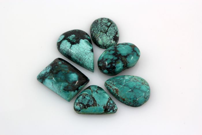 Turquoise 174.59ctw MixShape&Sizes LooseGemstone **|**|** 6 pcs Charming Genuine Turquoise Cabochons Loose Gemstone in Various Sizes and Shape ; MSRP: $600