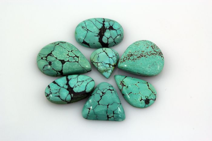 Turquoise 174.79ctw MixShape&Sizes LooseGemstone **|**|** 7 pcs Charming Genuine Turquoise Cabochons Loose Gemstone in Various Sizes and Shape ; MSRP: $600