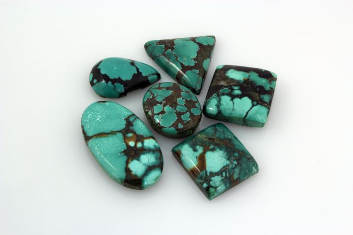 Turquoise 185.84ctw MixShape&Sizes LooseGemstone **|**|** 6 pcs Charming Genuine Turquoise Cabochons Loose Gemstone in Various Sizes and Shape ; MSRP: $600