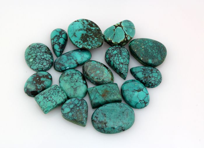 Turquoise 201.50ctw MixShape&Sizes LooseGemstone **|**|** 16 pcs Charming Genuine Cute Turquoise Cabochons Loose Gemstone in Various Sizes and Shape ; MSRP: $700