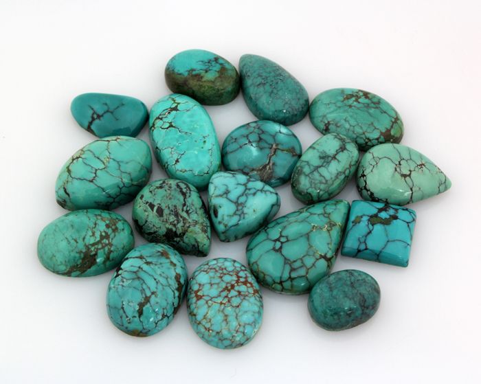 Turquoise 205.00ctw MixShape&Sizes LooseGemstone **|**|** 17 pcs Charming Genuine Turquoise Cabochons Loose Gemstone in Various Sizes and Shape ; MSRP: $700