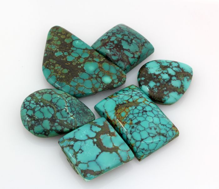 Turquoise 210.50ctw MixShape&Sizes LooseGemstone **|**|** 6 pcs Charming Genuine Turquoise Cabochons Loose Gemstone in Various Sizes and Shape ; MSRP: $700