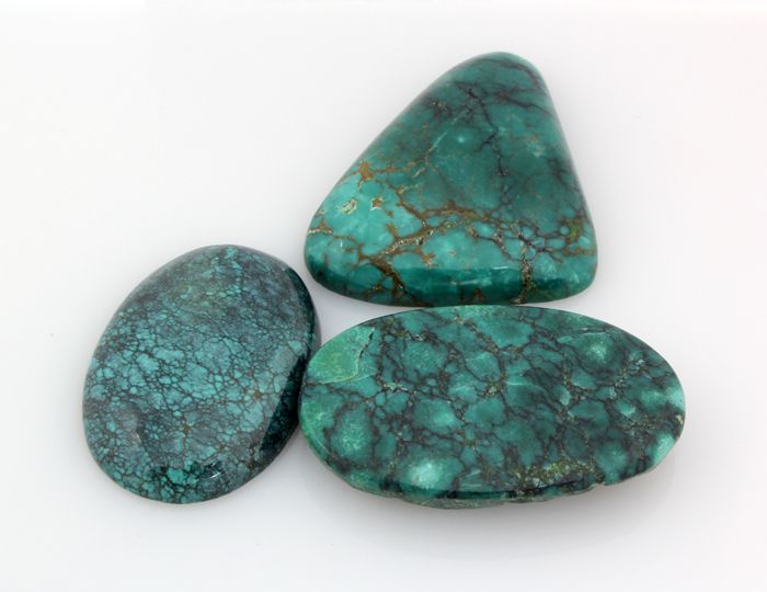 Turquoise 225.50ctw MixShape&Sizes LooseGemstone **|**|** 3 pcs Charming Big Natural Green Turquoise Loose Gemstone Mix Sizes Oval and Trapezoid Shape ; MSRP: $700