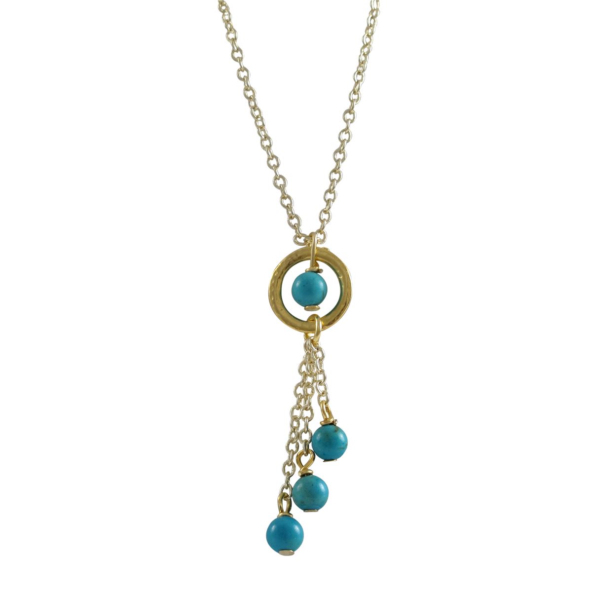 Turquoise 4Mm Balls And Turquoise 4Mm Ball In Ring, Lariat Style Necklace, Gold Plated Brass Chain,