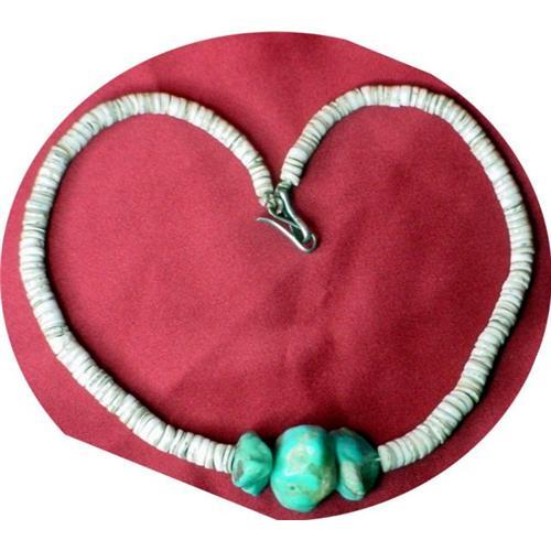 this is a beautifu three stone turquoise & Beads necklace. Thank you! Support Our troops..