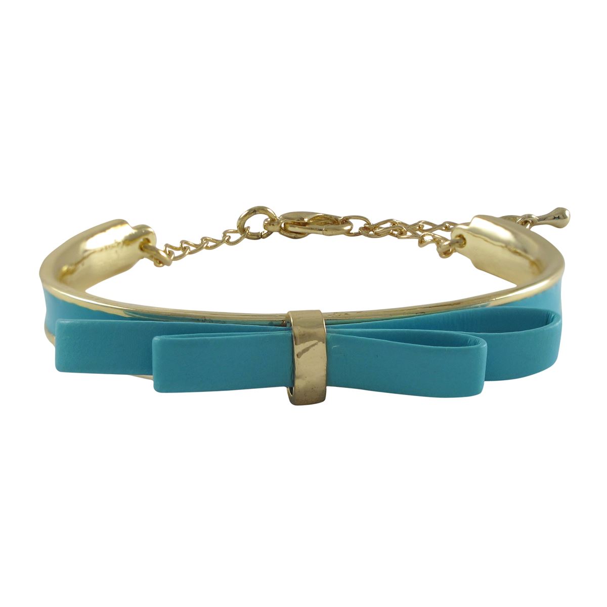 Turquoise Bow On Turquoise Enamel Gold Plated Brass Bangle Bracelet, 5.5" 2"