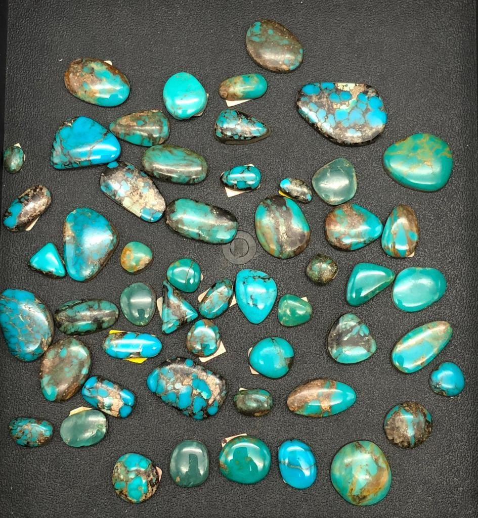 For your consideration are approximately 448.4 carats of turquoise cabochons. They are from the estate of a former jeweler who made and sold jewelry back in the 1970s and 80s. The verbal history handed down with them is they were cut from rough turquoise purchased directly from the Blue Gem mine owner in Nevada, but we have no verification of this other than verbal history. The rough turquoise in lot 152 would have came out of the same material and are from the same estate. These stones are ready to be made into something beautiful! MAKER: The good Lord and Mother Nature. They were cabbed by a jeweler in NM. APPROX AGE: Old as dirt, but made into cabochons about 30 years ago. SIZE: Approx. 448.5 carats. CONDITION: Good for its age, normal wear expected. Please look closely at the pictures as they are an important part of our description and are hereby incorporated into the description, specifically with regards to condition. SHIPPING: There will be a $5 handling / packaging fee for shipping this lot. The actual cost of postage will be added on top of that. BUY IT NOW: If you would like to buy this item now, without waiting for the auction day to bid on it, we do offer this option (which is available up to 48 hours before the actual auction starts). The “Buy it Now” price is the high estimate of this lot (plus applicable fees and the Buyer's premium is discounted to 10% when using the Buy it Now option). If you would like to exercise this option, you must contact us by email (or phone as long as you talk to someone live). Reference this lot number and your intention to "Buy it Now."