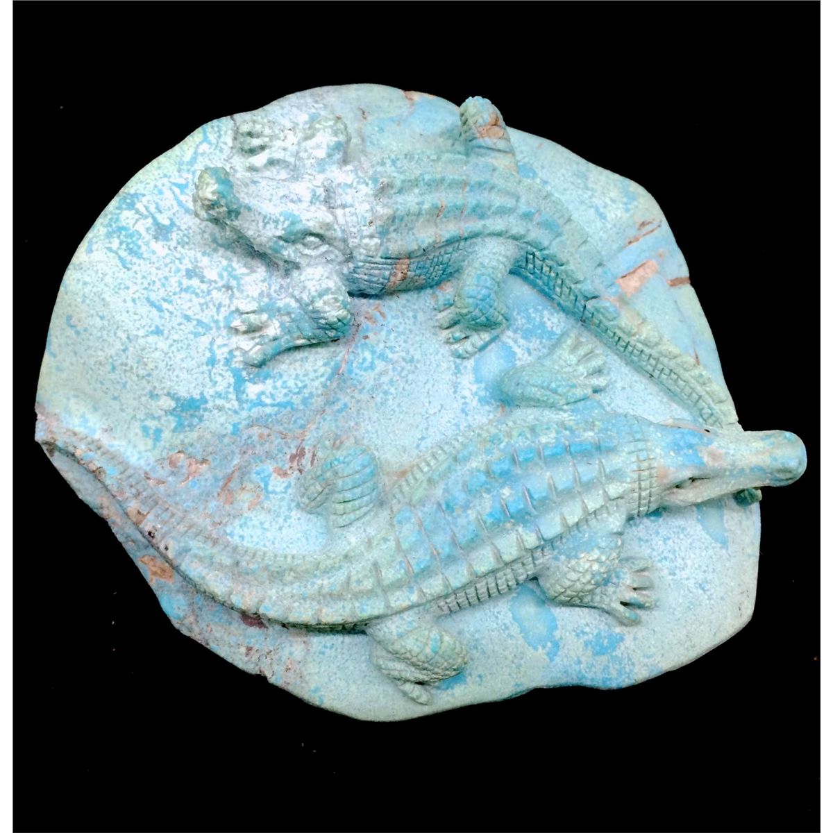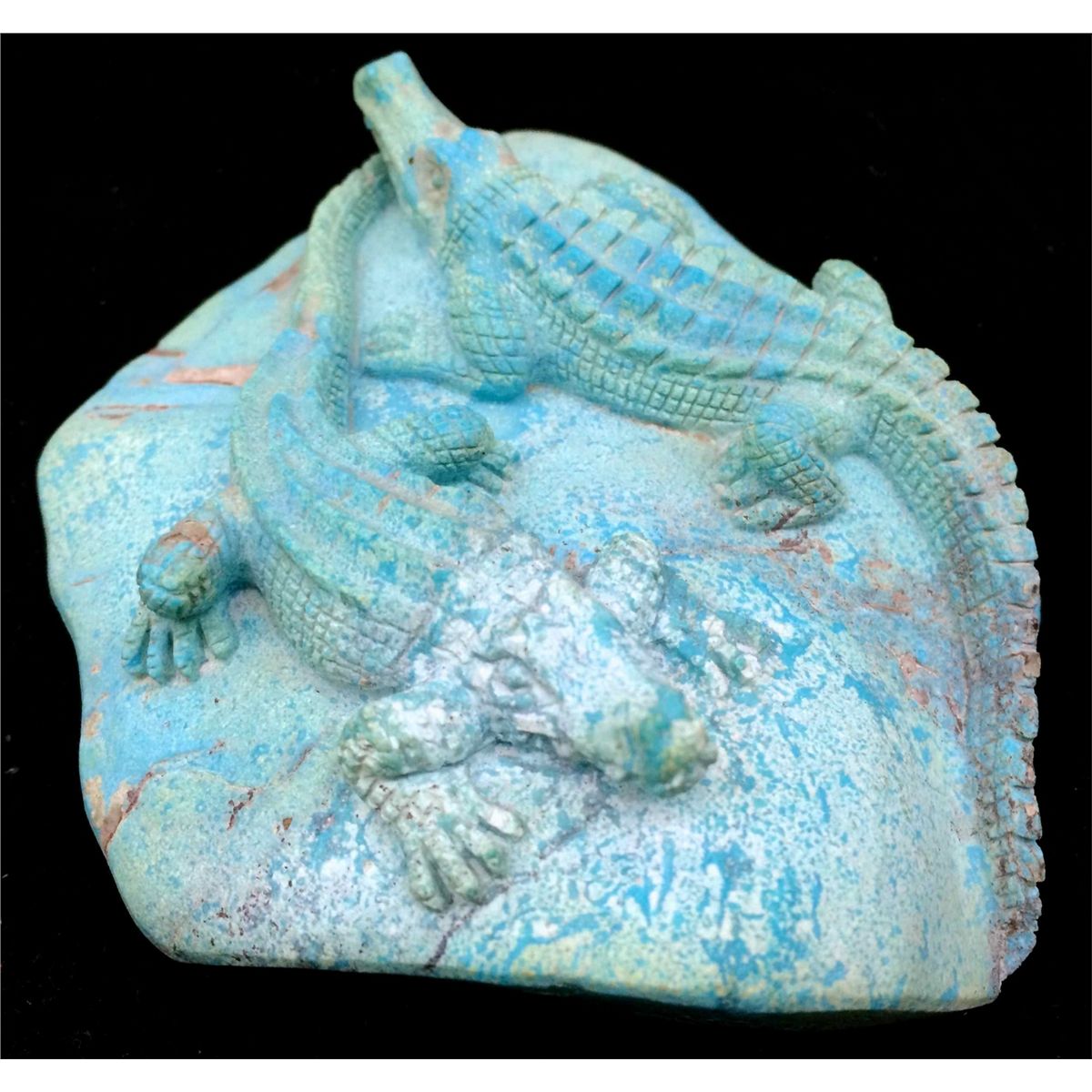 A whopping 1466 carats of turquoise that has been carved any manner so there are two alligators on it.