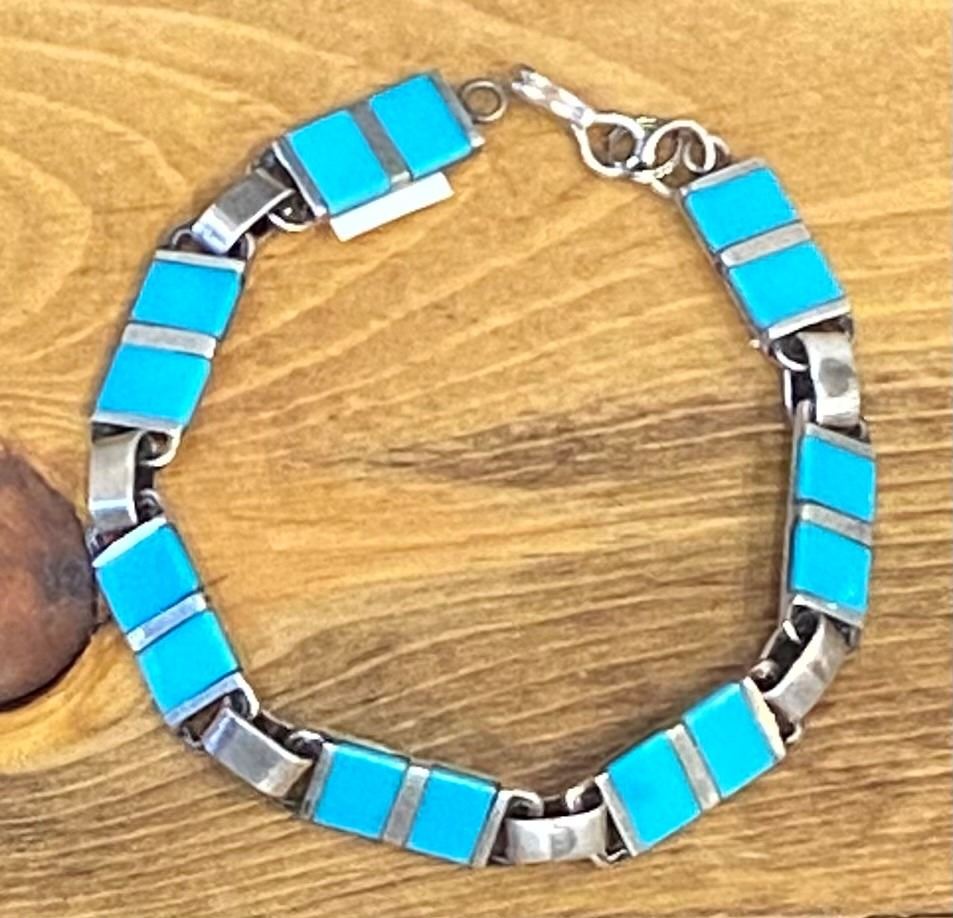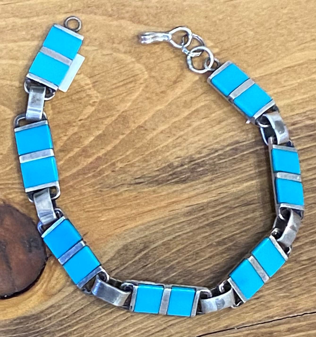 Turquoise Chain link bracelet 7 1/2 inch long unsigned. Awesome design and work 16 grams
