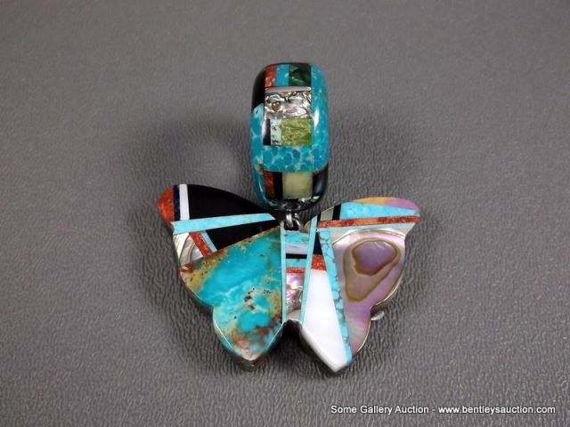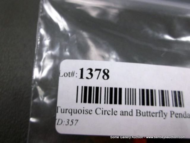 Turquoise Circle and Butterfly Pendant w/ Mother Of Pearl and Black Onyx-Marked Chris Nieto Weight: