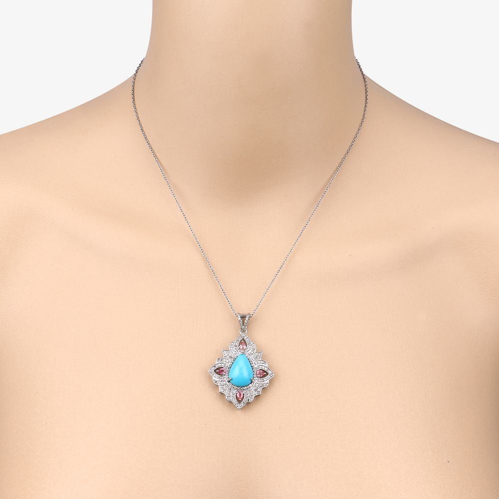 TITLE DESCRIPTION: Turquoise & amp; Diamond Pendant Necklace