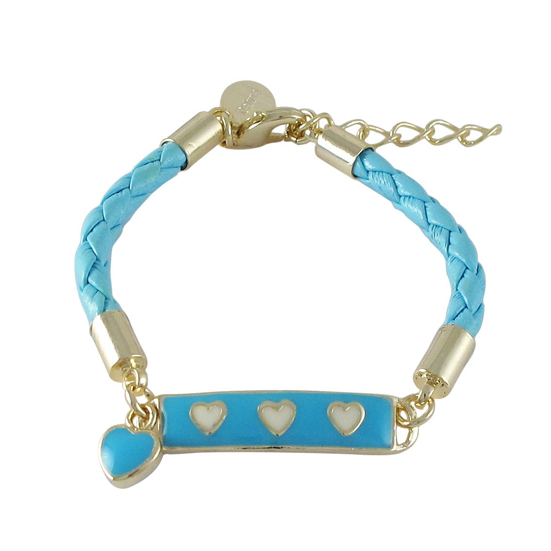 Turquoise Enamel Bar With White Hearts Turquoise Cord Bracelet Brass, 5" 1"