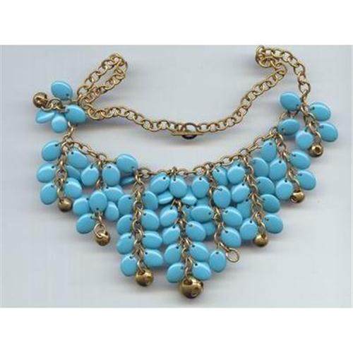 <tr><td>Title: Turquoise Glass Beaded Necklace Bib Style</td></tr>