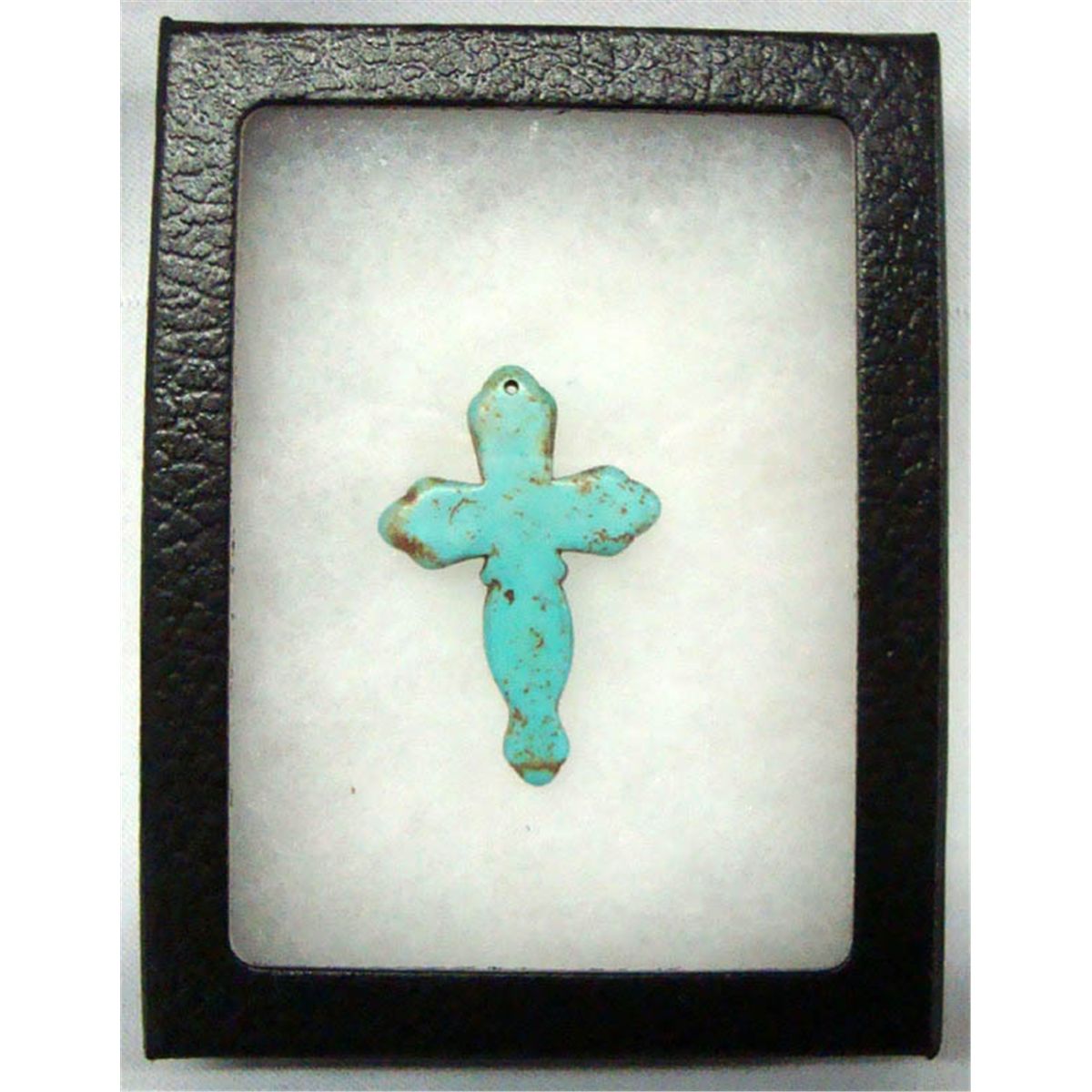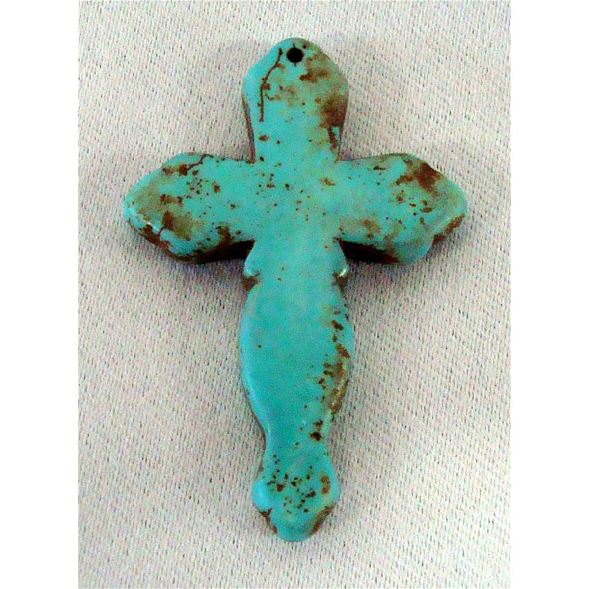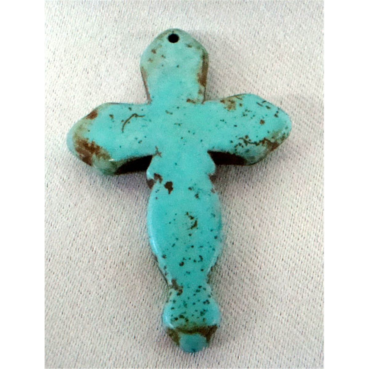 Turquoise howlite cross pendant. Measures approx. 1.75'' H x 1'' W/ Drilled to accomodate a bail. Buyers Pay Actual Shipping and Handling Charges(see terms and conditions for more information)