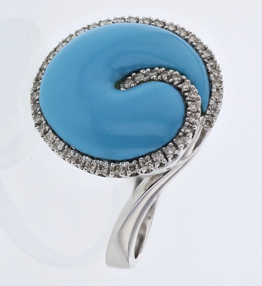 REF-117F4M ---- Turquoise Inlay Prong-set Diamond Ring in 14K White Gold