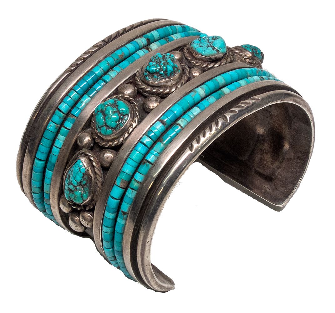 c1970 This bracelet was made by Navajo silver and goldsmith Leroy Begay. The bracelet measures 2.75" across and 2.10" tall. - HKA#66117