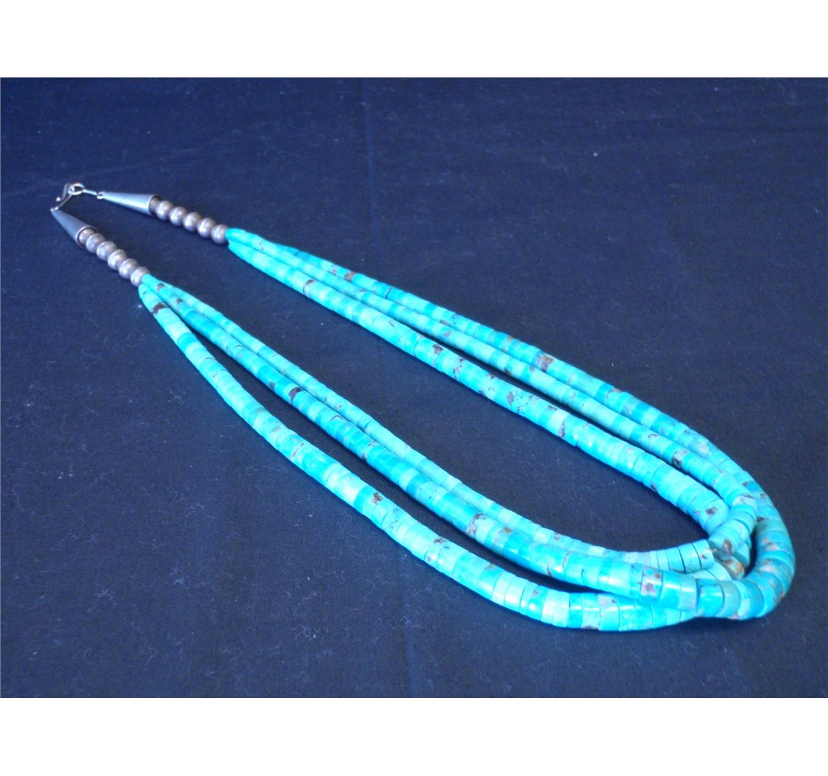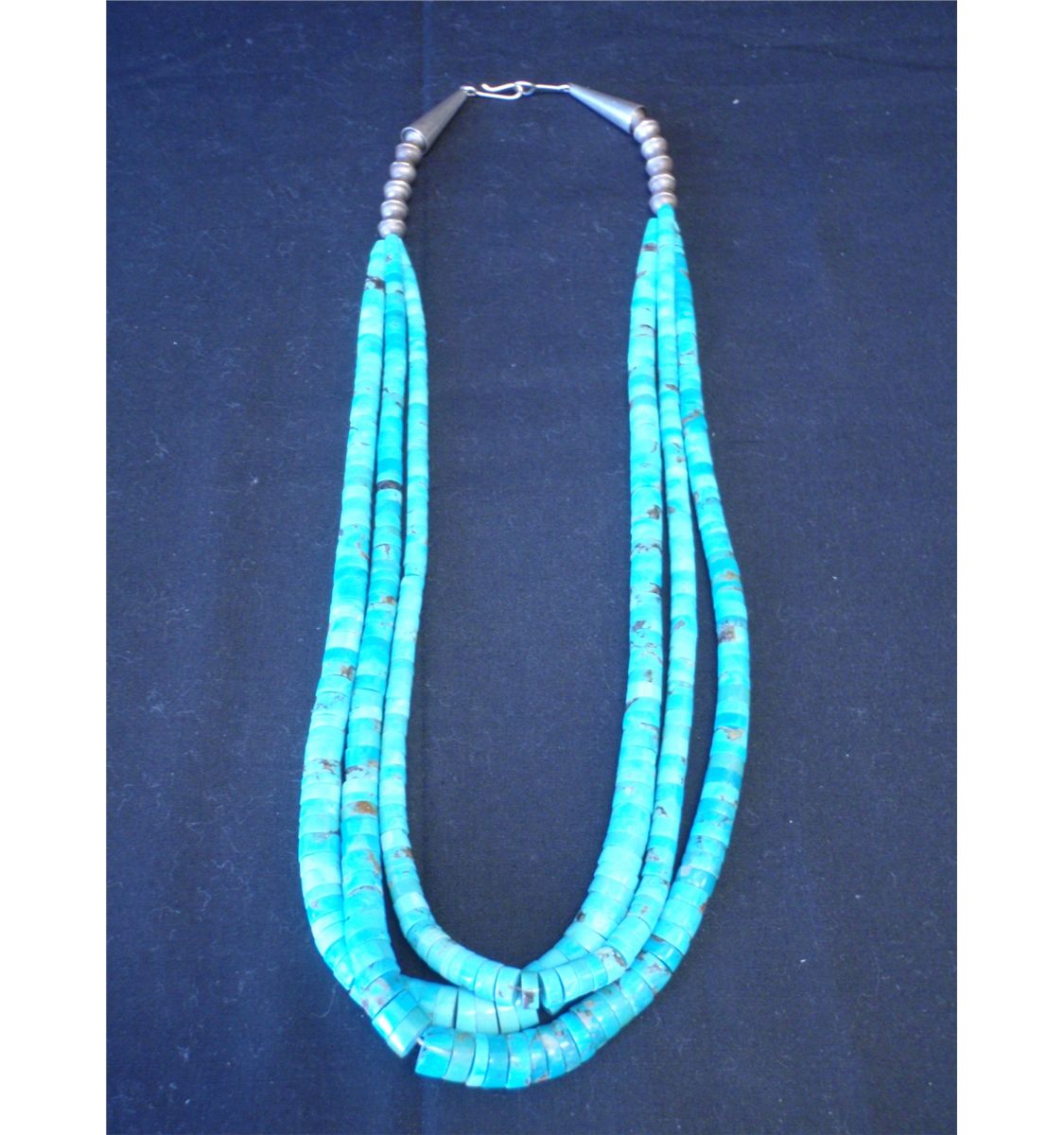 23" Santa Domingo, Three strand, graduated turquoise beads necklace. Shipping on this lot: $5.00. Additional Shipping Charges for Lots sent outside of the U.S