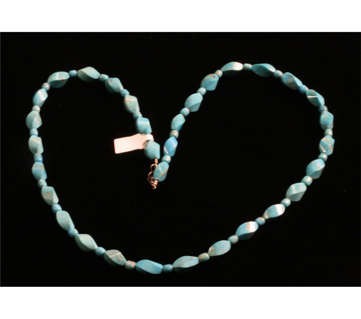Turquoise Necklace, With spiral finished 4 sided beads, 26" Long, -530001-