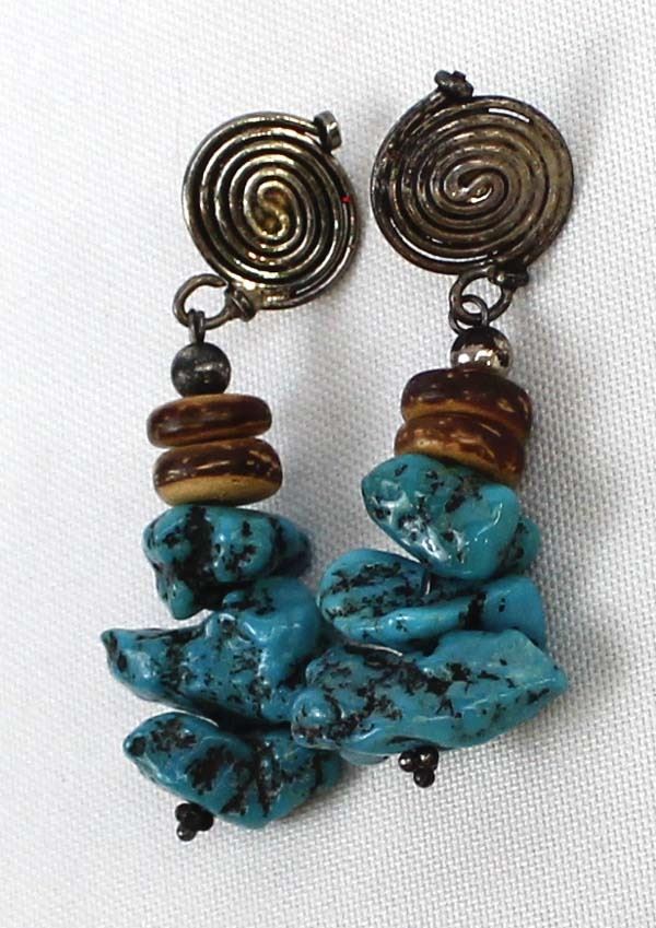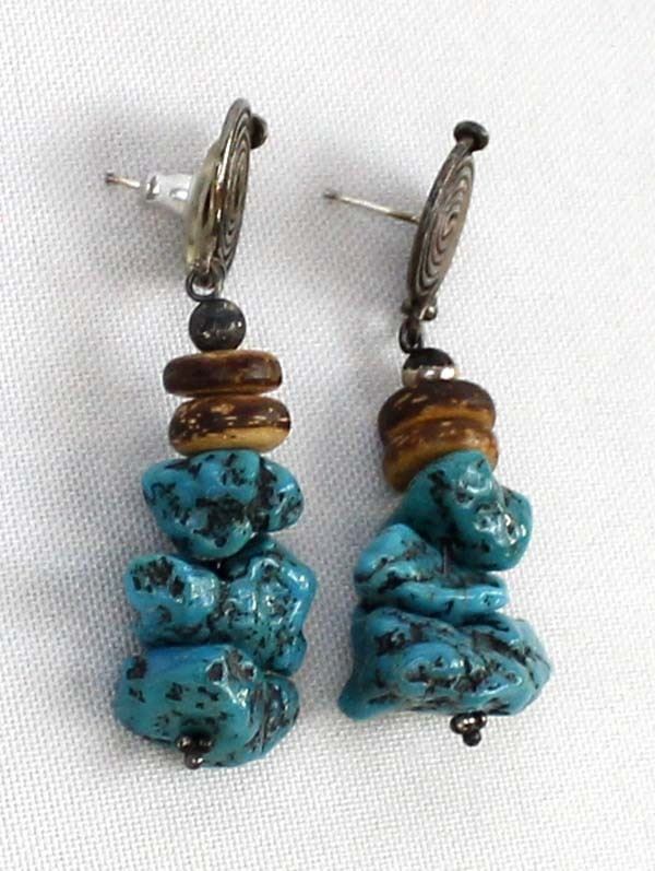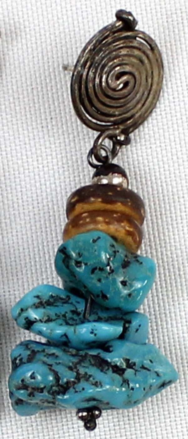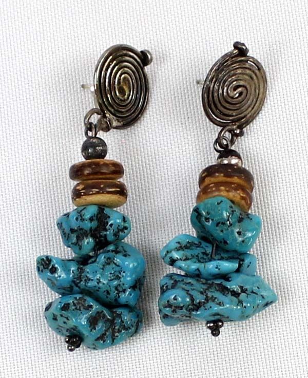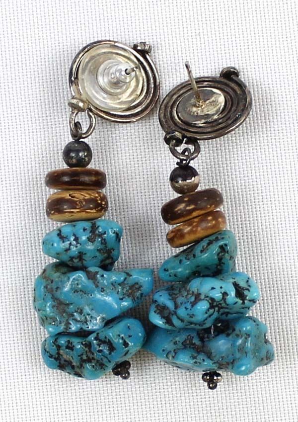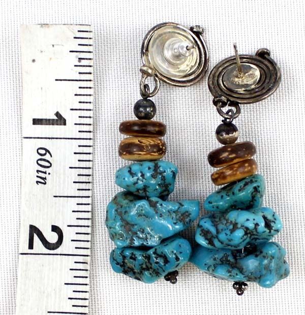 Turquoise Nugget & Bead Earrings, measure 2.5''L x 7/8''W