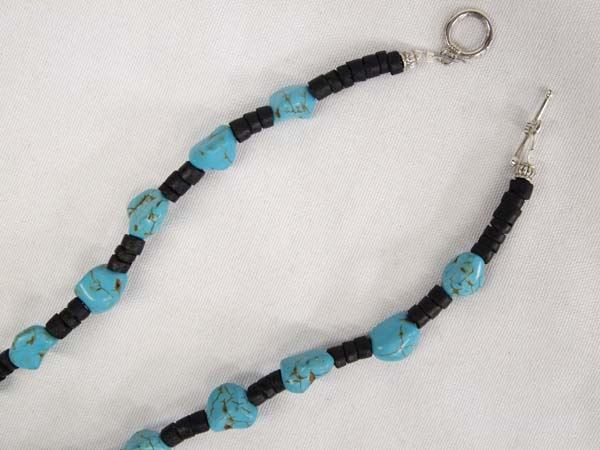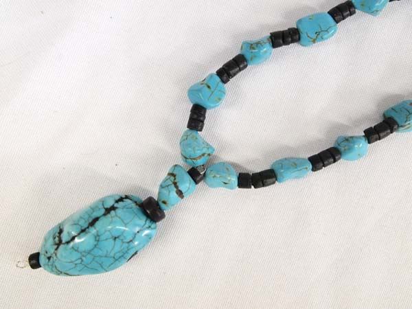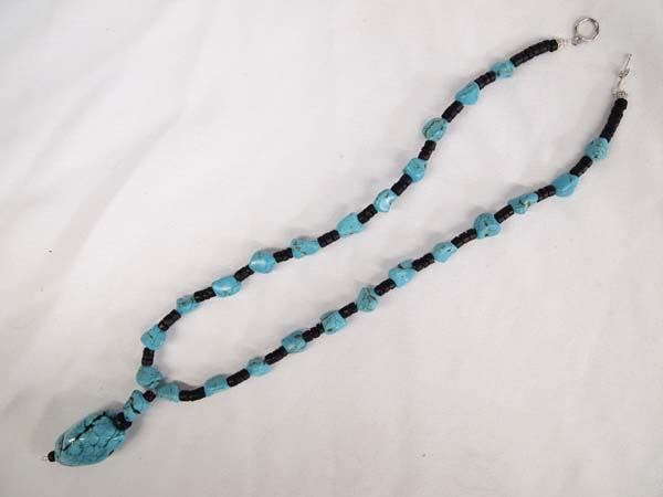 Turquoise Nugget & Jet Pendant Necklace, measures 22'' end to end, turquoise nugget pendant measures 2.5''L x 1''W, 57g in total wt.