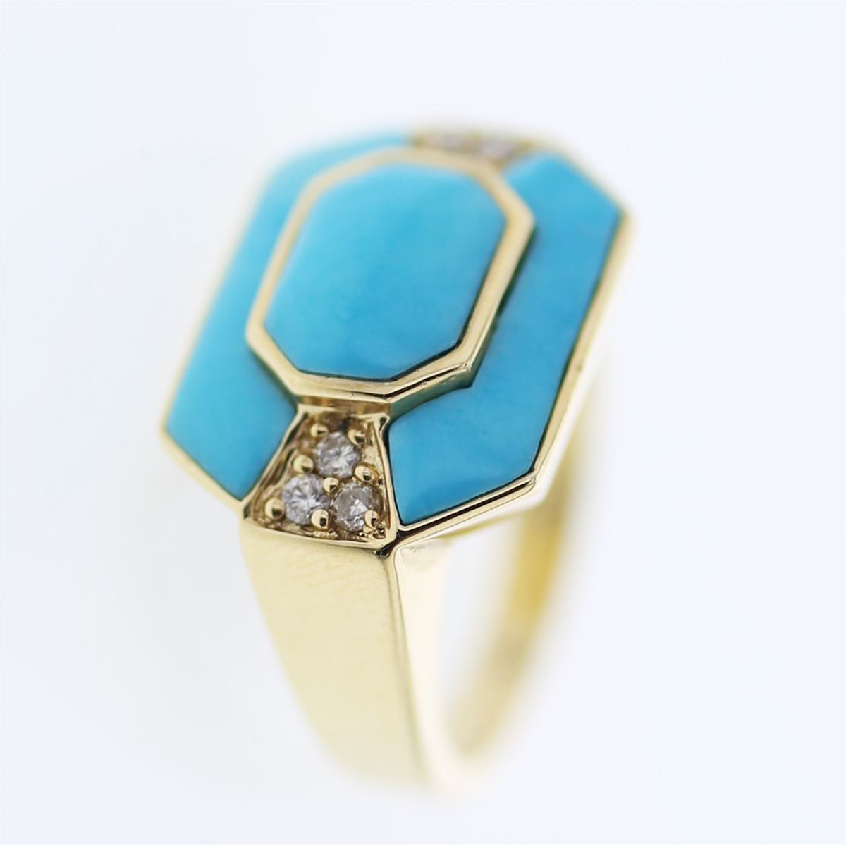Turquoise Over-lay Ring w/ Diamonds in 14K Yellow Gold