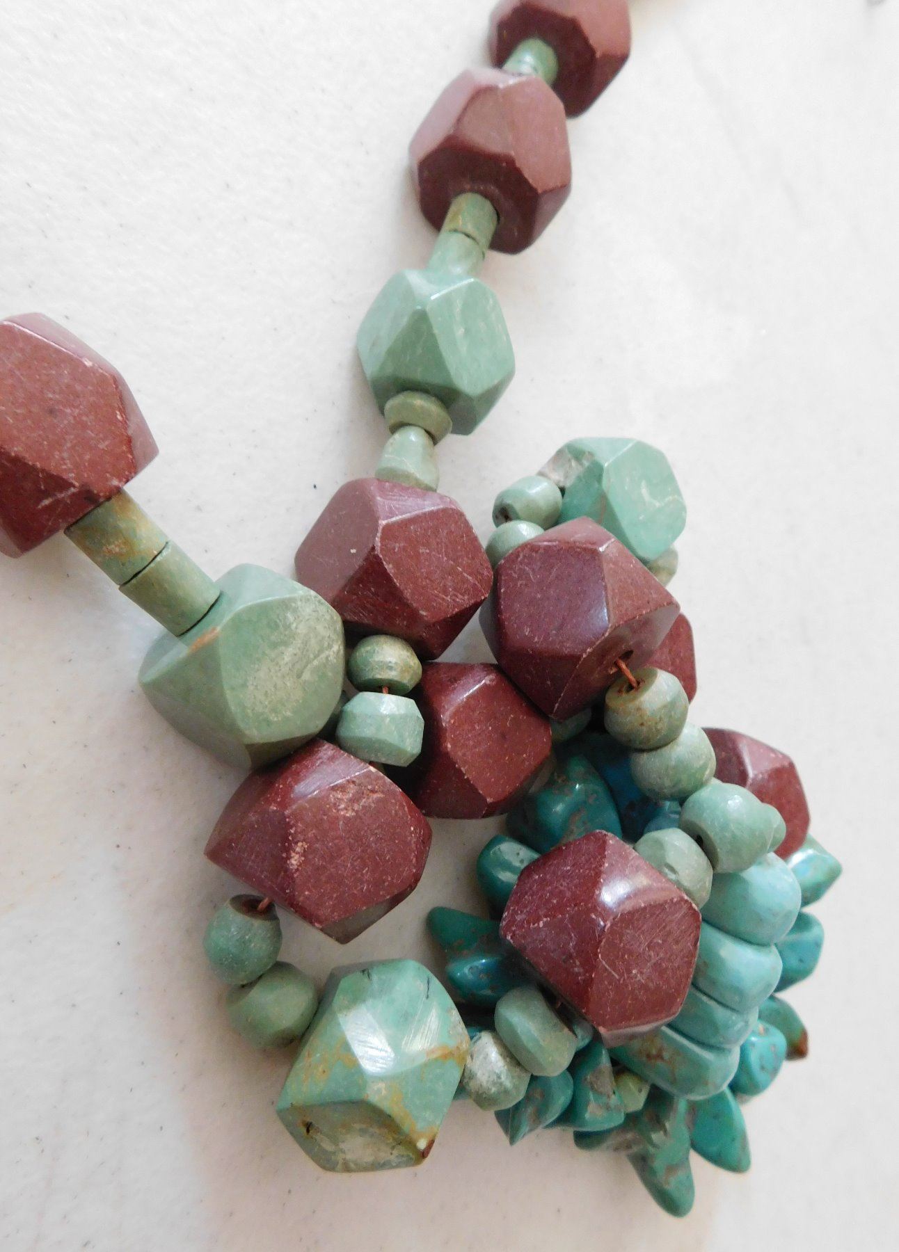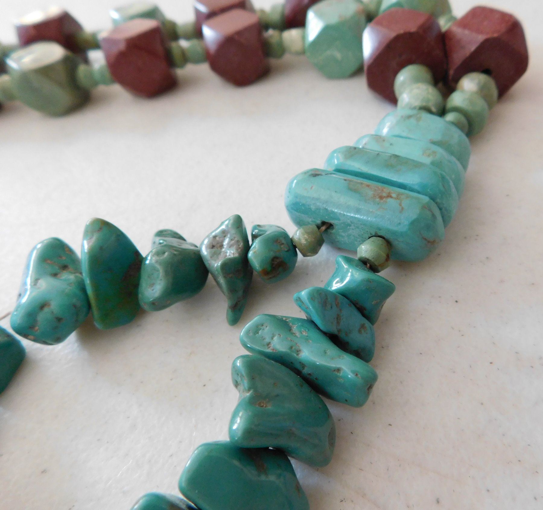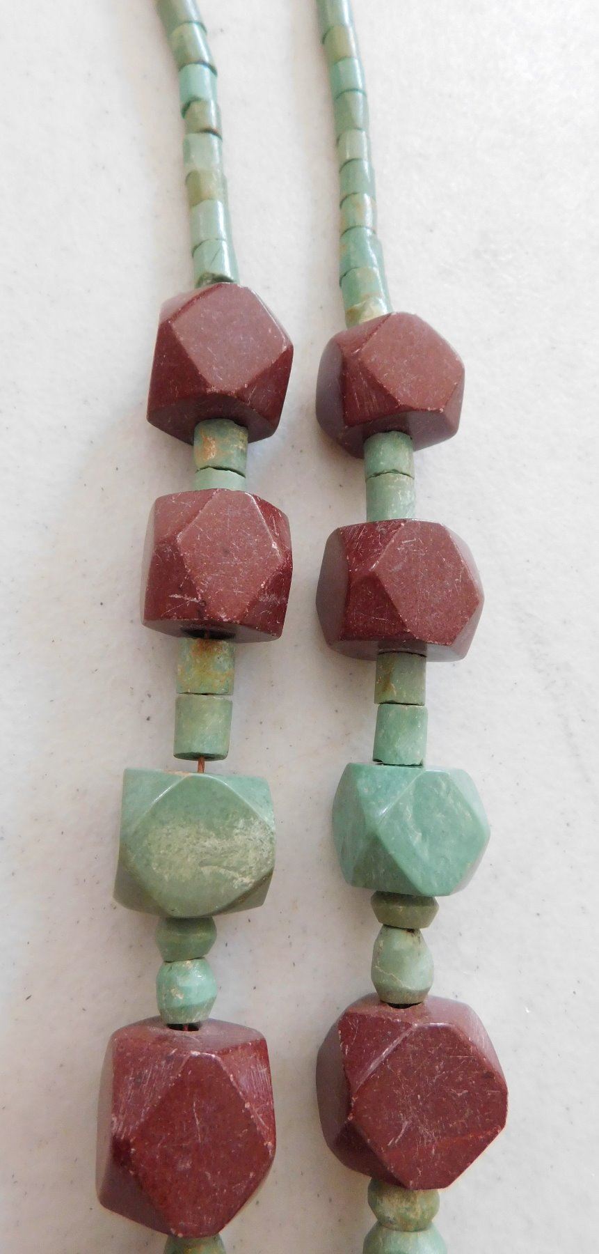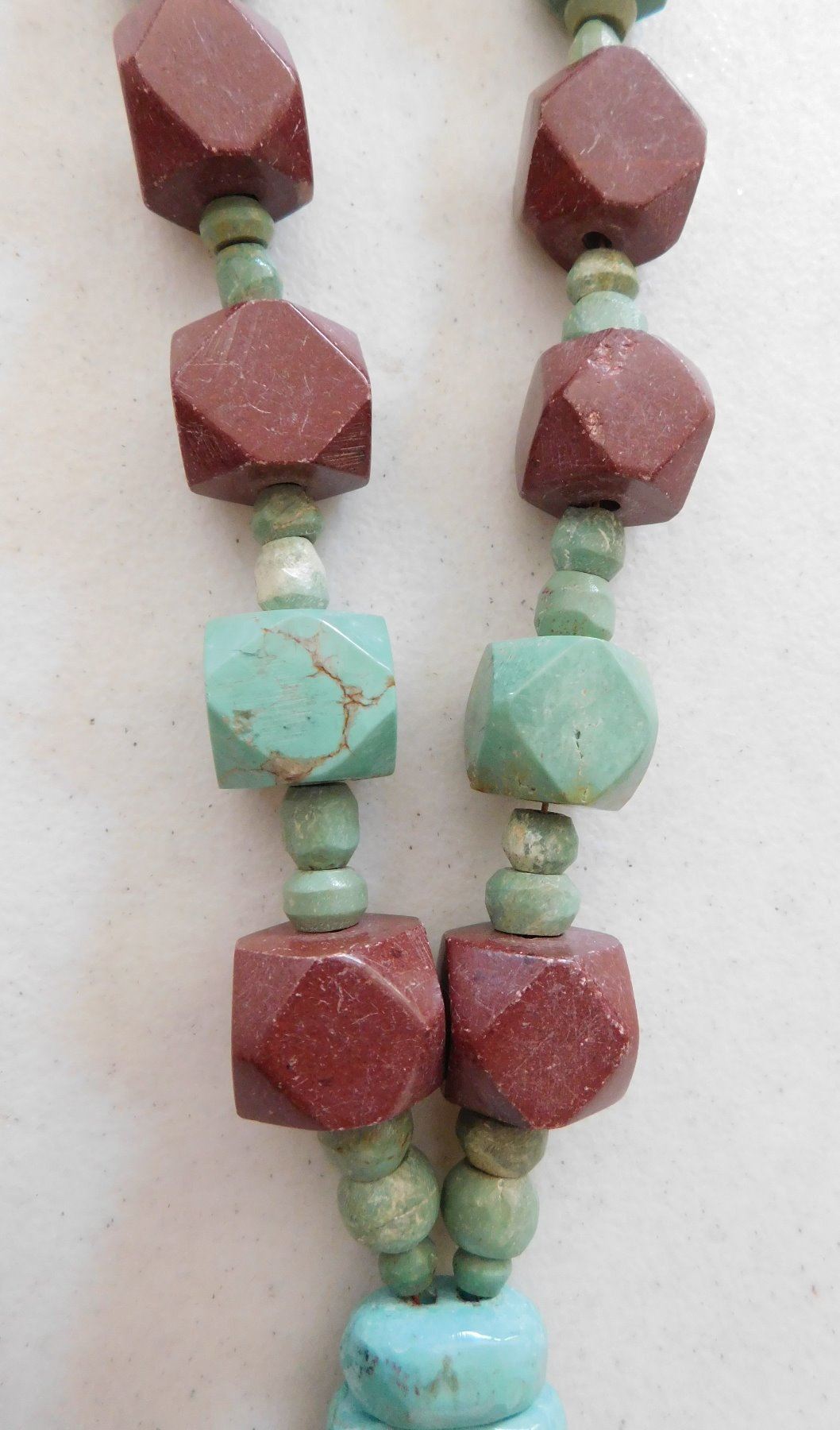 Turquoise & Pipestone Necklace, c. 1960s. Made of turquoise and pipestone, the item hangs 20" as worn, weighing approx. 297.6 grams. Arizona. Condition: Good, minor wear, see images. Shipping: $16.50 w/insurance and signature.