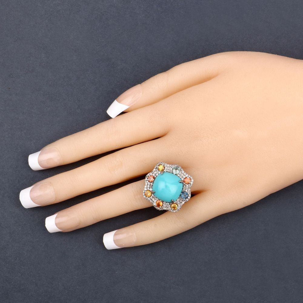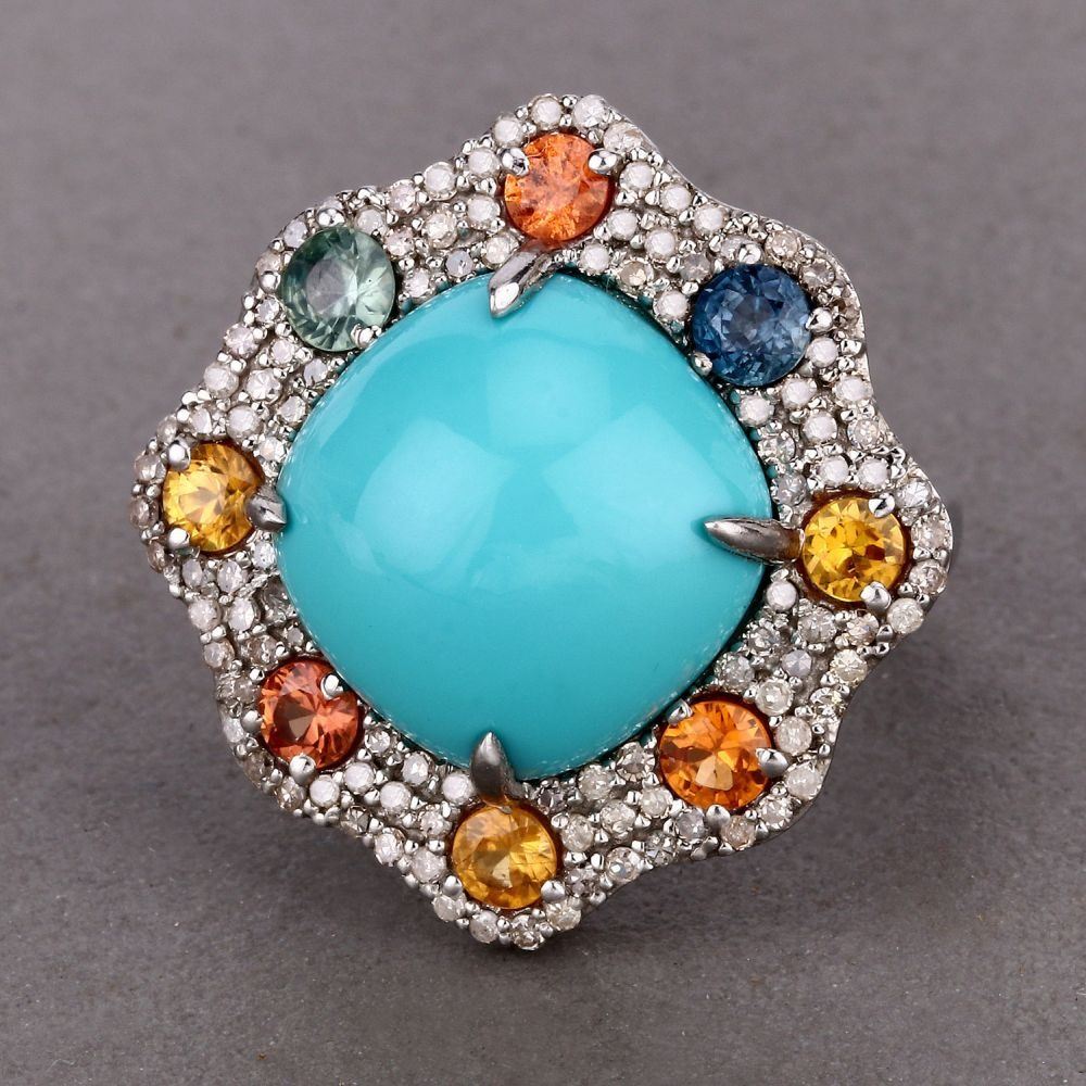 TITLE DESCRIPTION: Turquoise & amp; Sapphire Cocktail Ring