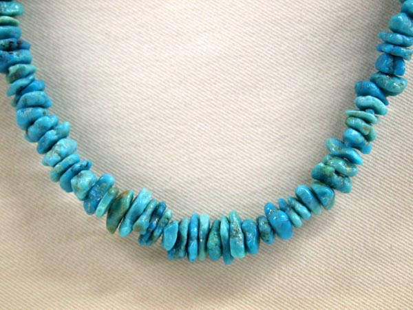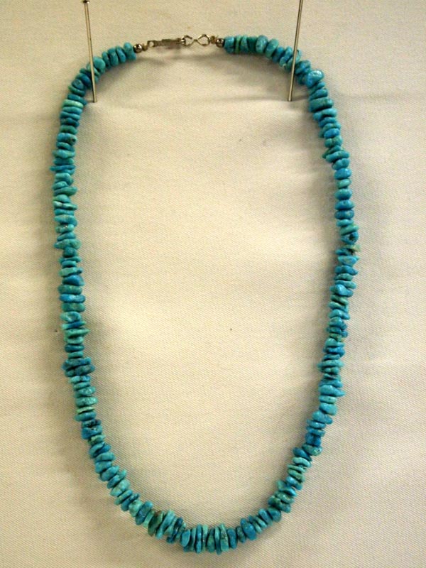 Turquoise Small Nugget Necklace. Measures 17'' end to end. Nuggets are approximately 1/4'' or less in diameter. Buyers pay actual shipping and handling charges (see terms and conditions for more information.)