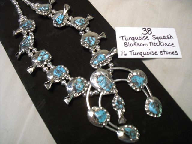 Turquoise Squash Blossom Necklace-16 Turquoise Stones