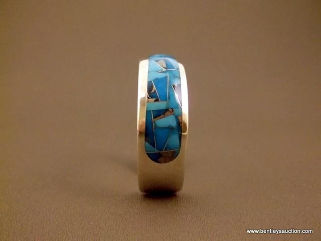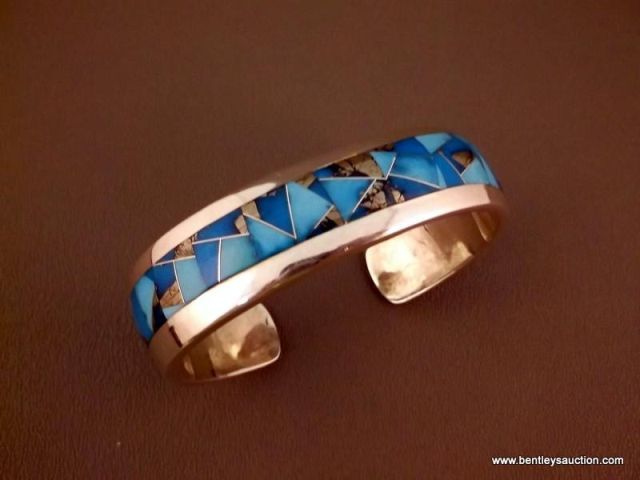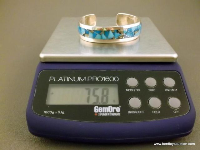 Turquoise & Sterling Silver Bracelet Marked Studio GL Weight: 75.8 Grams Retail: $800.00