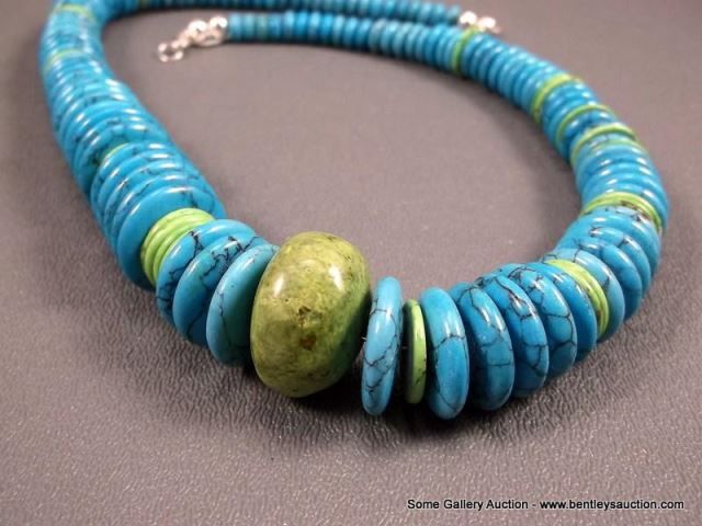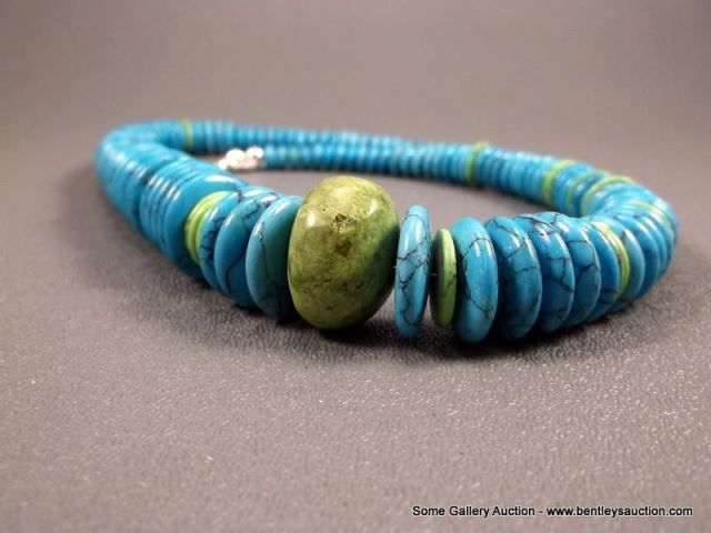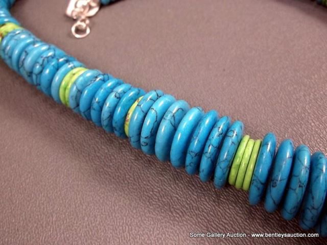 Turquoise Stone Necklace w/ Sterling Silver Clasp Weight: 163.2 Grams Retail: $295.00