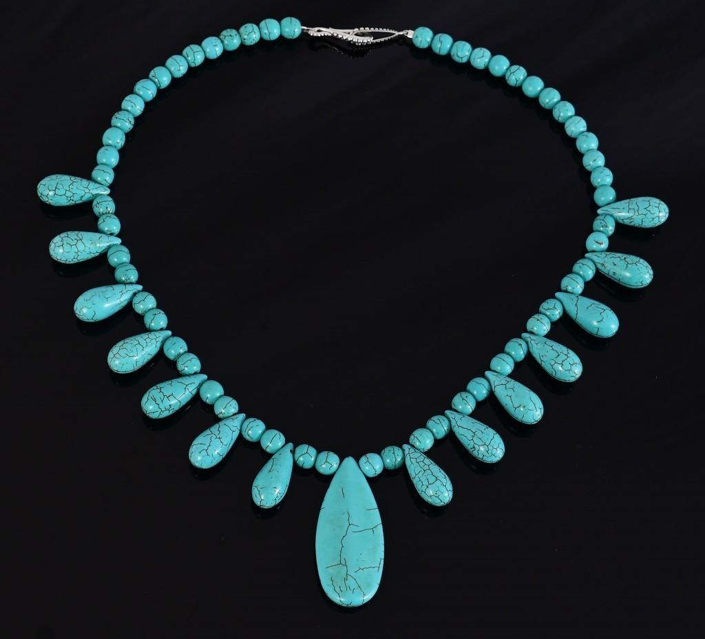 Contains 49 turquoise stone beads. Measures 22.5" in length