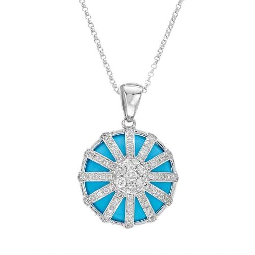 Turquoise & Sunray Diamond Slider w/ Chain in 14K White Gold | 345425 Grams, featuring 8.5 White Diamond Round ct 1 0.77 ct 114 ct 14 ct