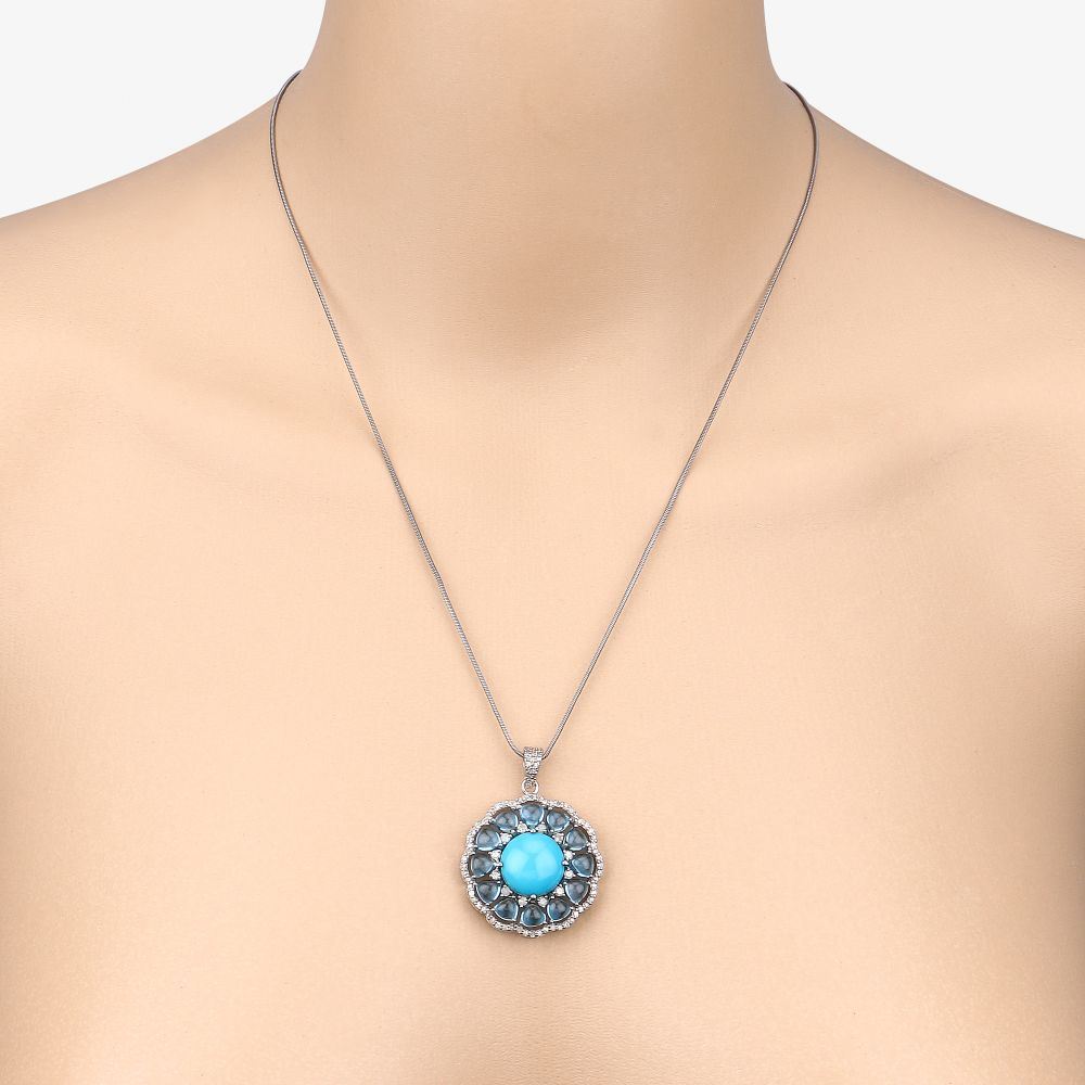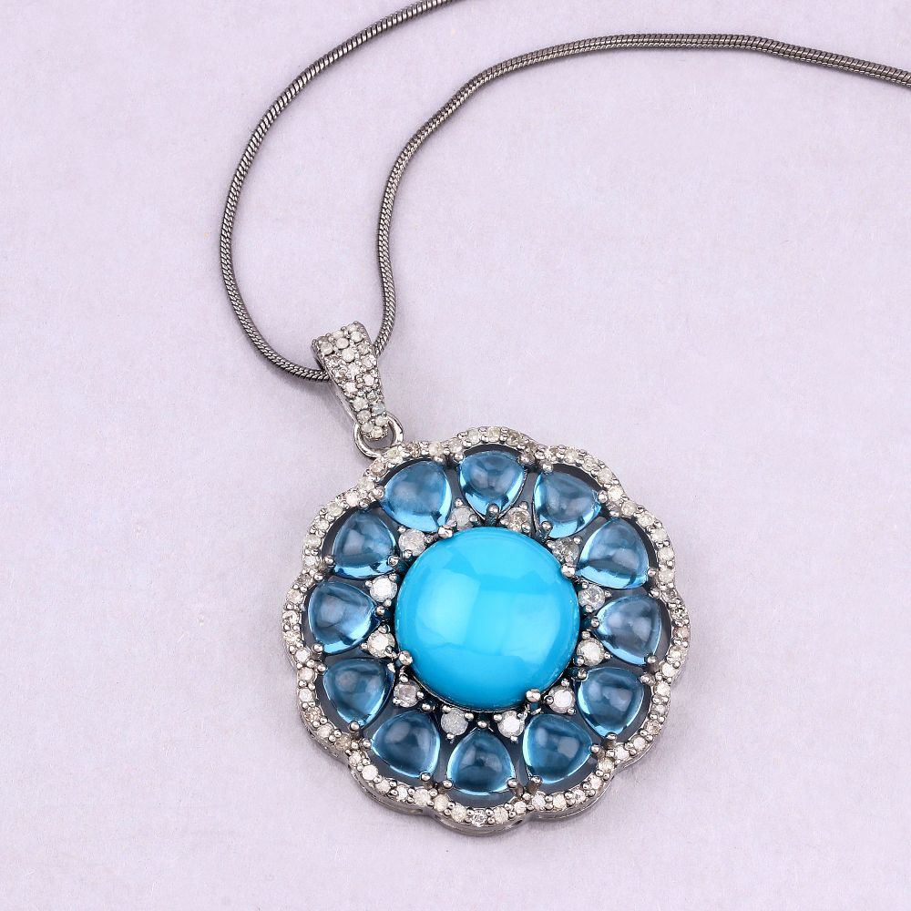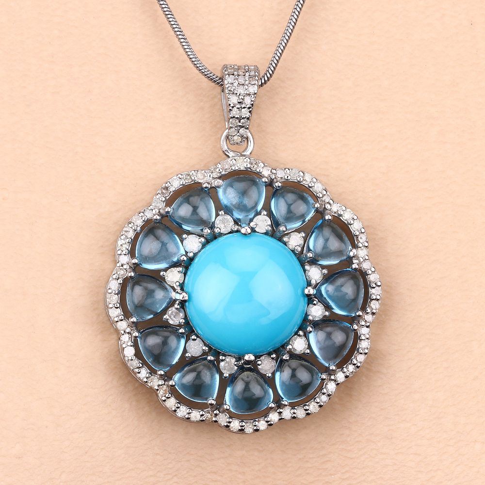 DESCRIPTION DETAIL: Turquoise Topaz & amp; Diamond Pendant Necklace