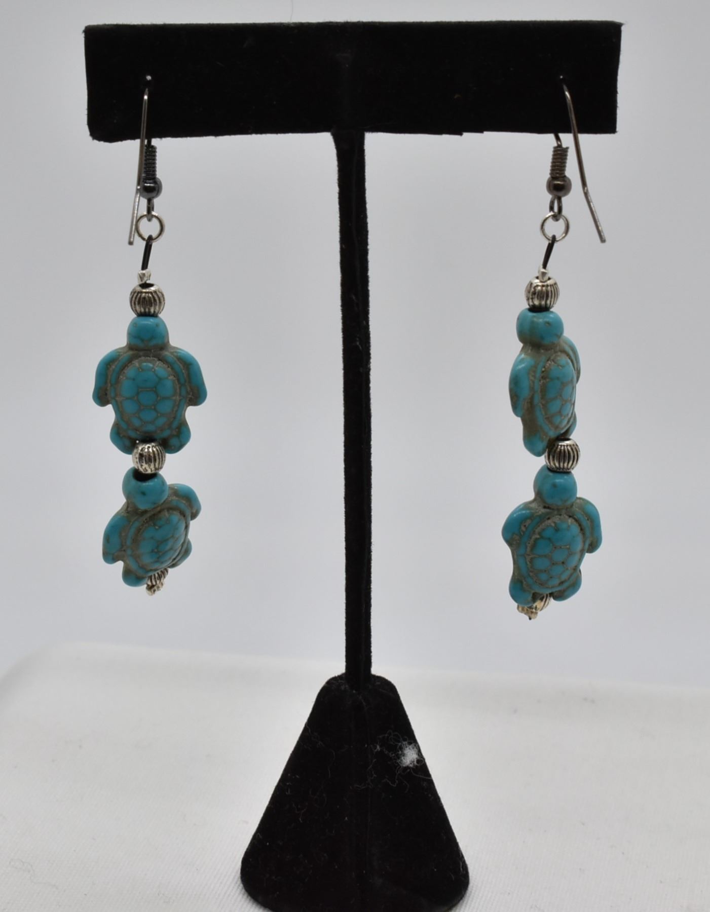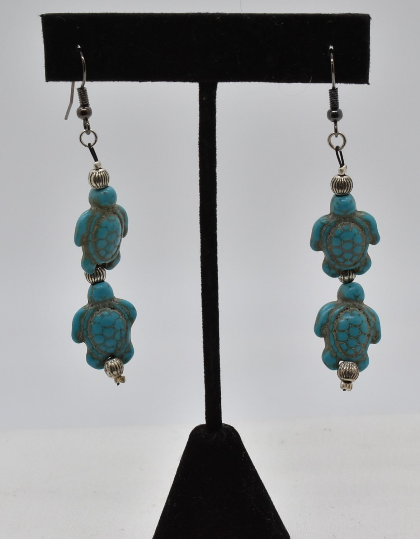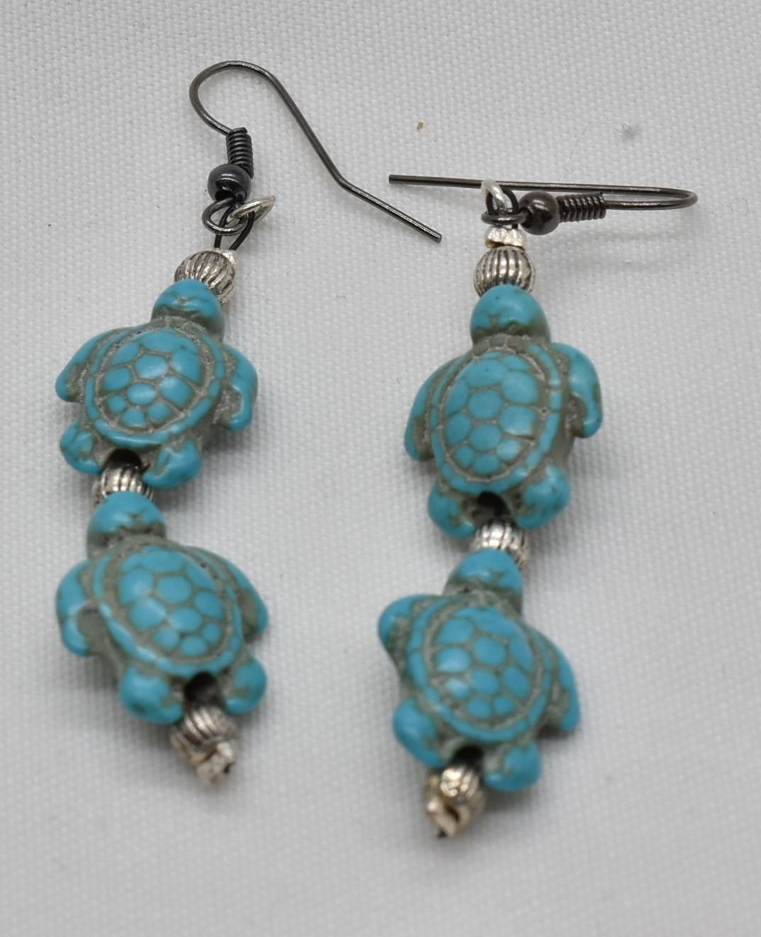 Turquoise Turtle Earrings, measure 2 7/8''L which includes the wire
