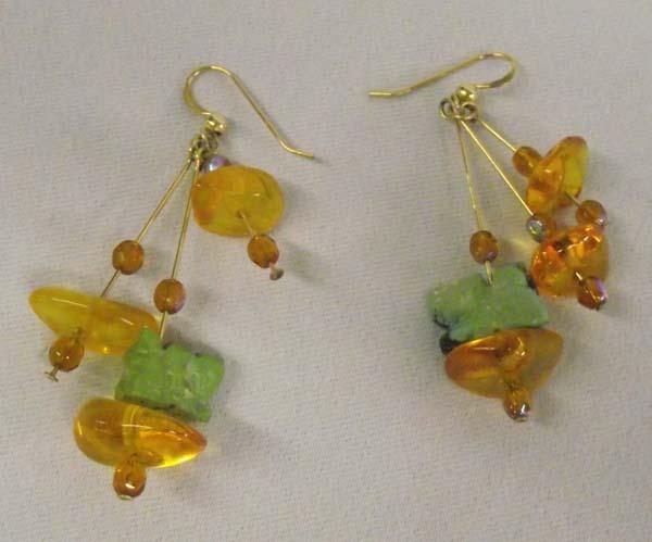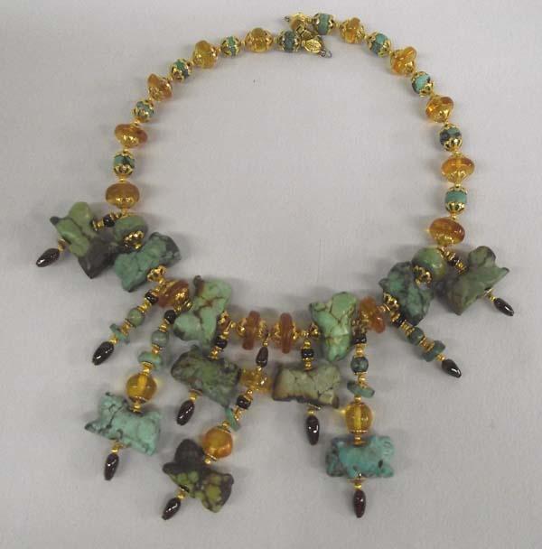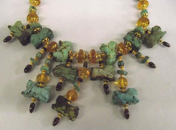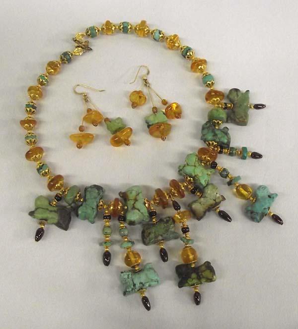 Turquoise and amber carved cat necklace on memory wire. 16'' length. Earrings 2''. Buyers Pay Actual Shipping and Handling Charges(see terms and conditions for more information).