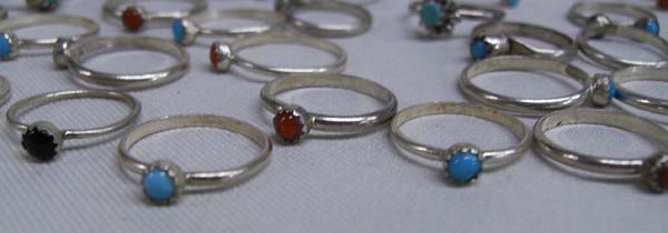 Turquoise and coral baby rings, set of 50. Buyers Pay Actual Shipping and Handling Charges(see terms and conditions for more information).