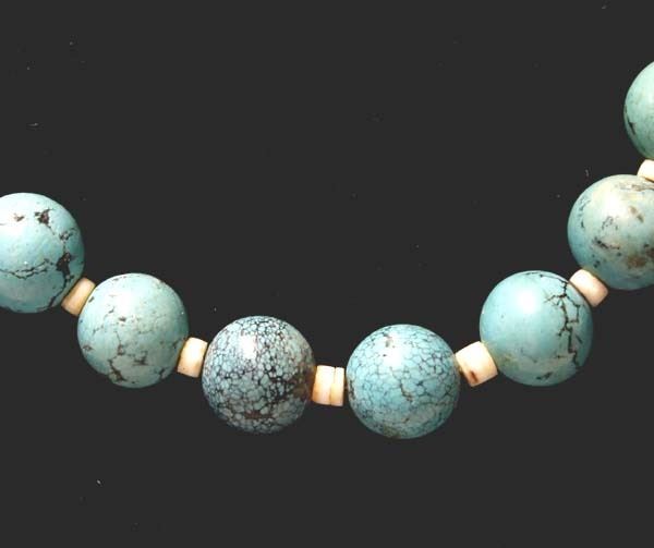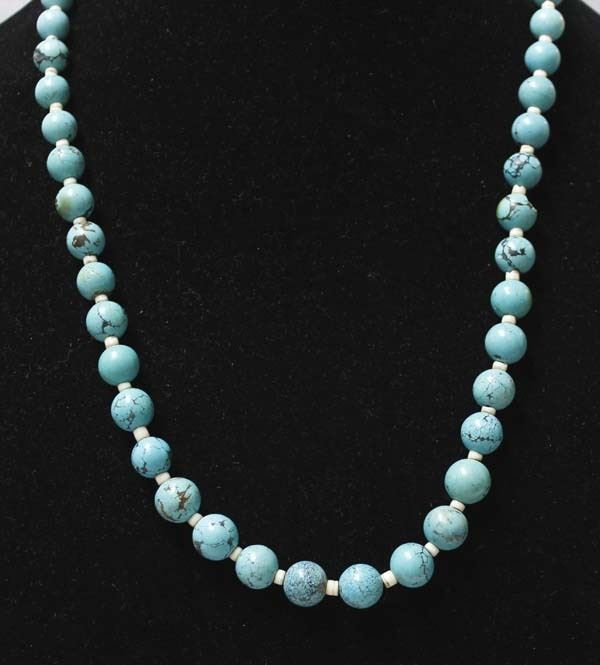 Turquoise and Heishi Bead Necklace, measures 22''L end to end, two small sterling bead accents, sterling clasp