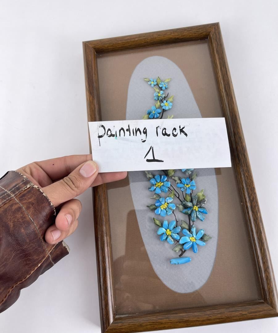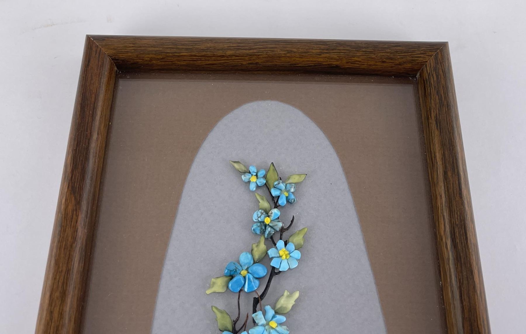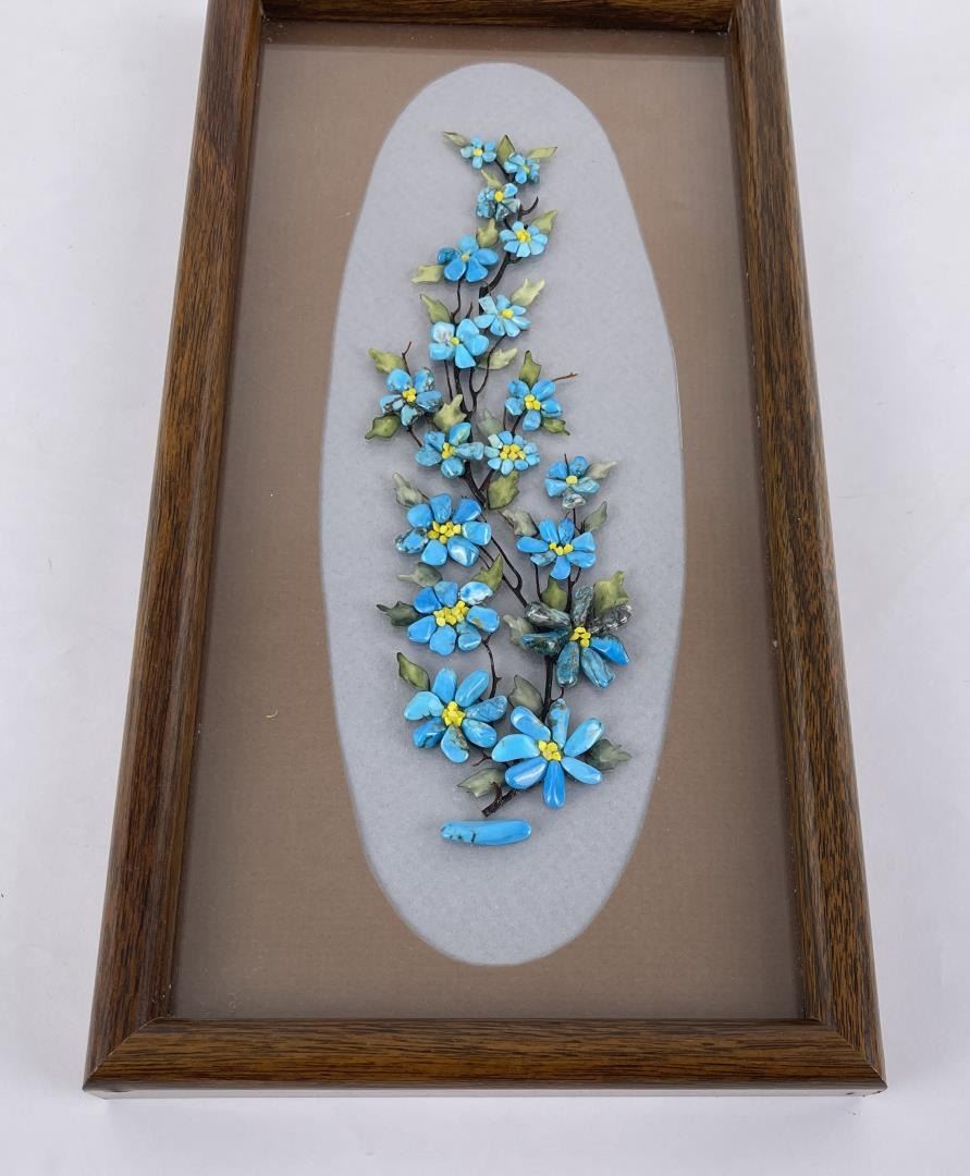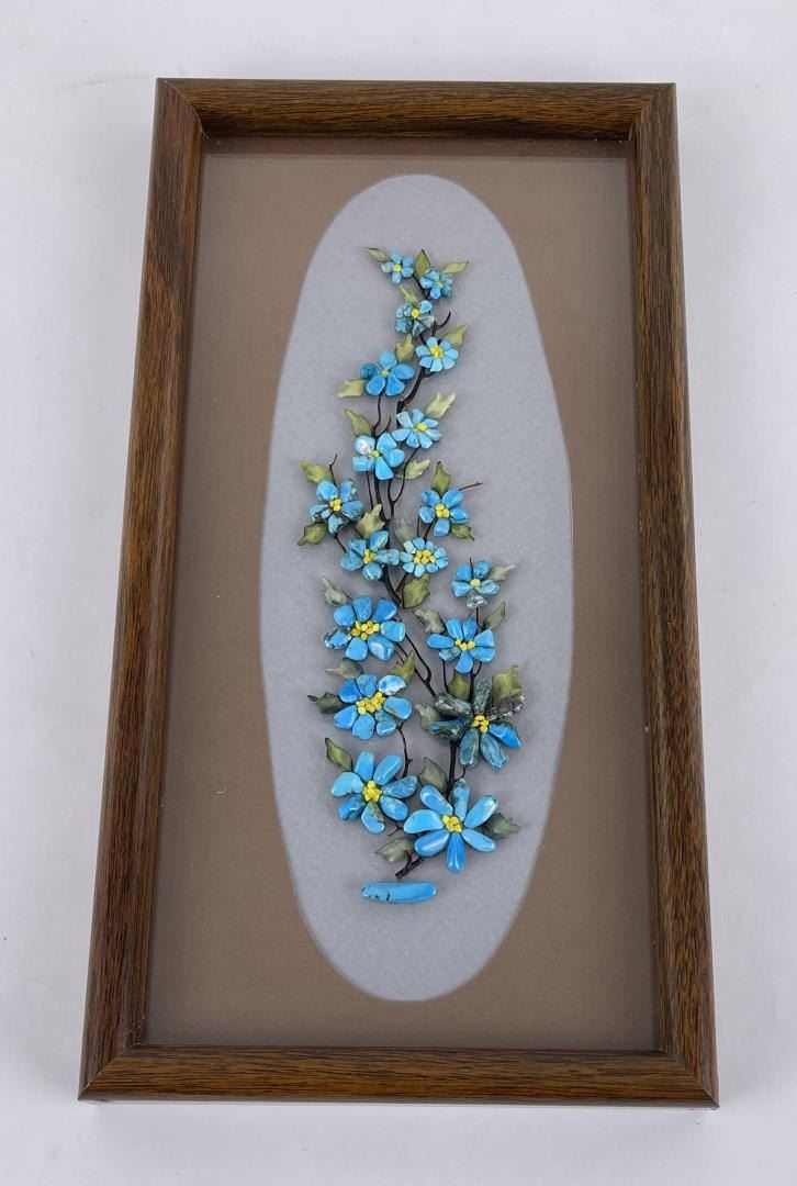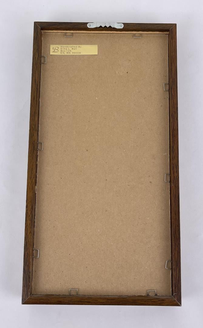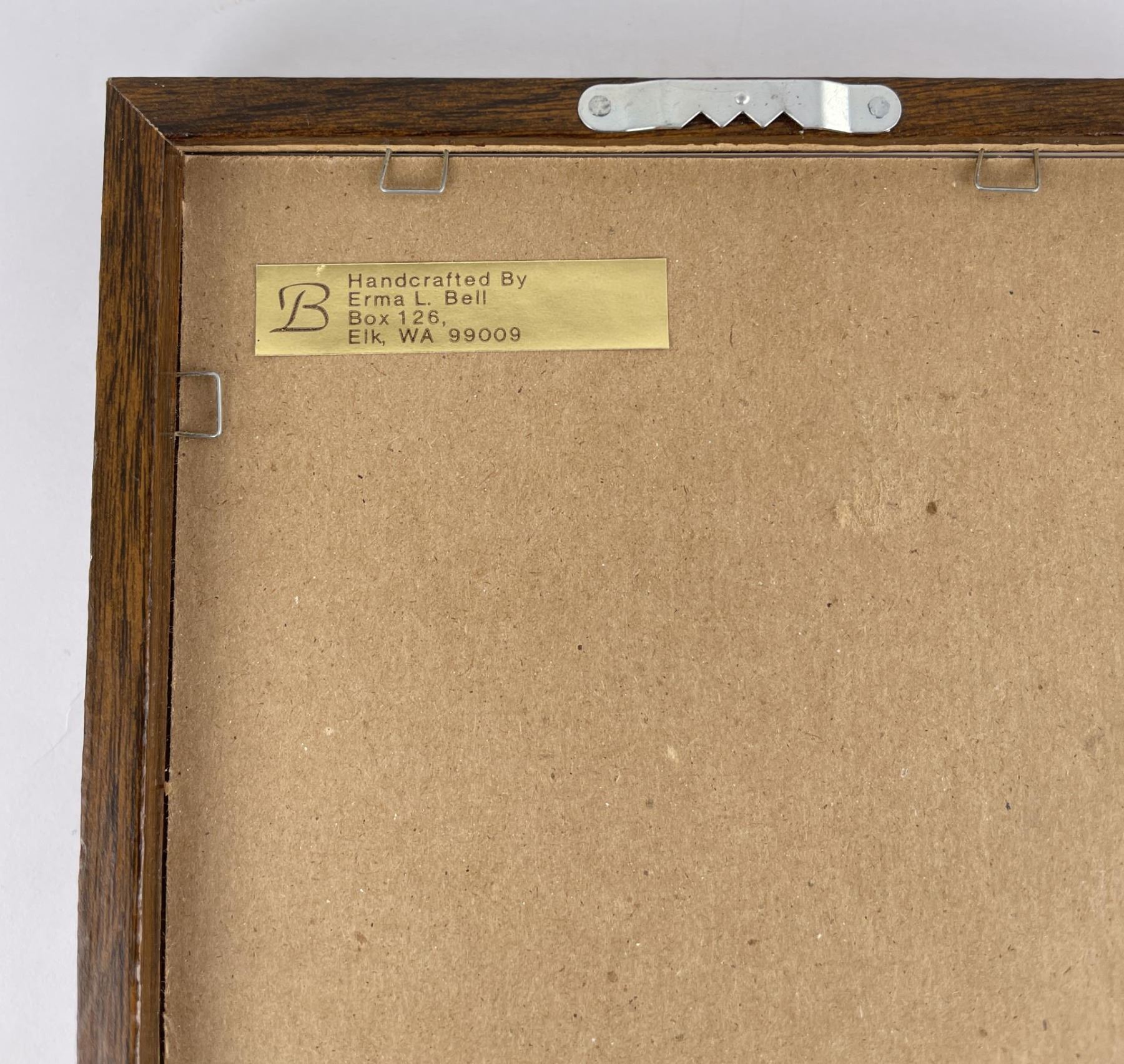 Neat piece. Made by Erma L Bell Elk Washington. 6 3/4" by 12 3/4" framed.