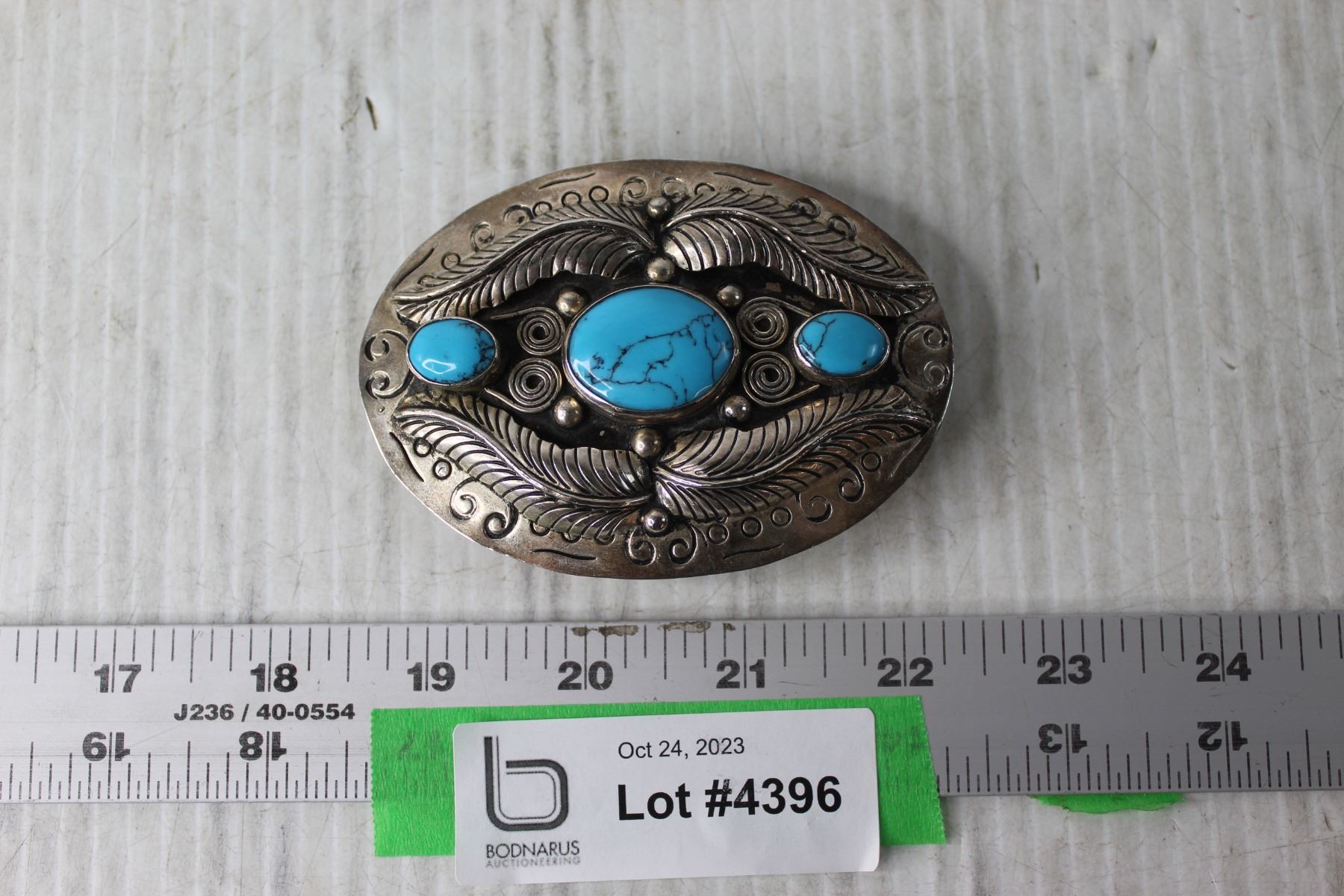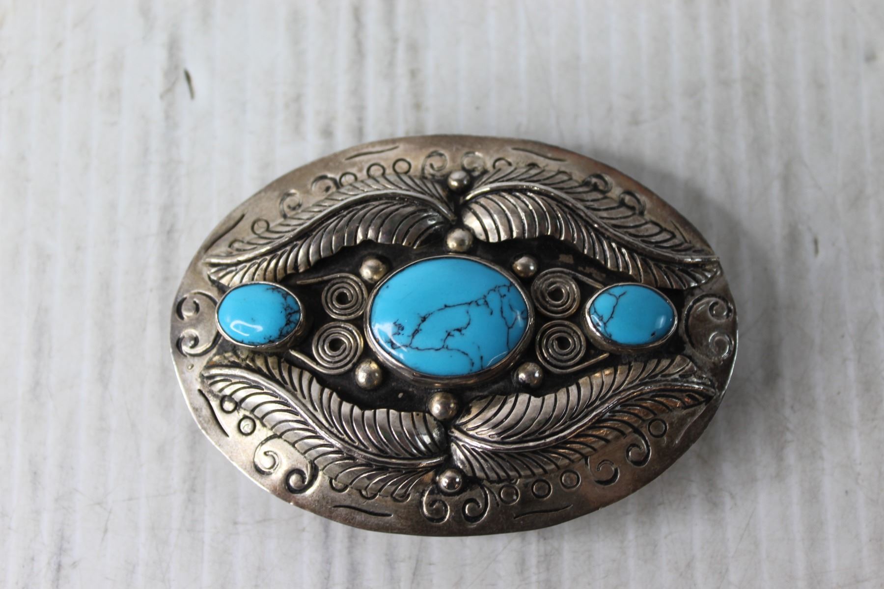 Turquoise and Metal Belt Buckle