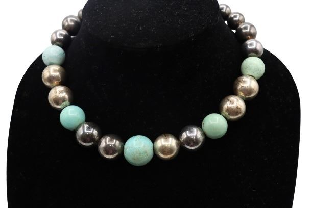 Turquoise and Metallic Beaded Necklace.