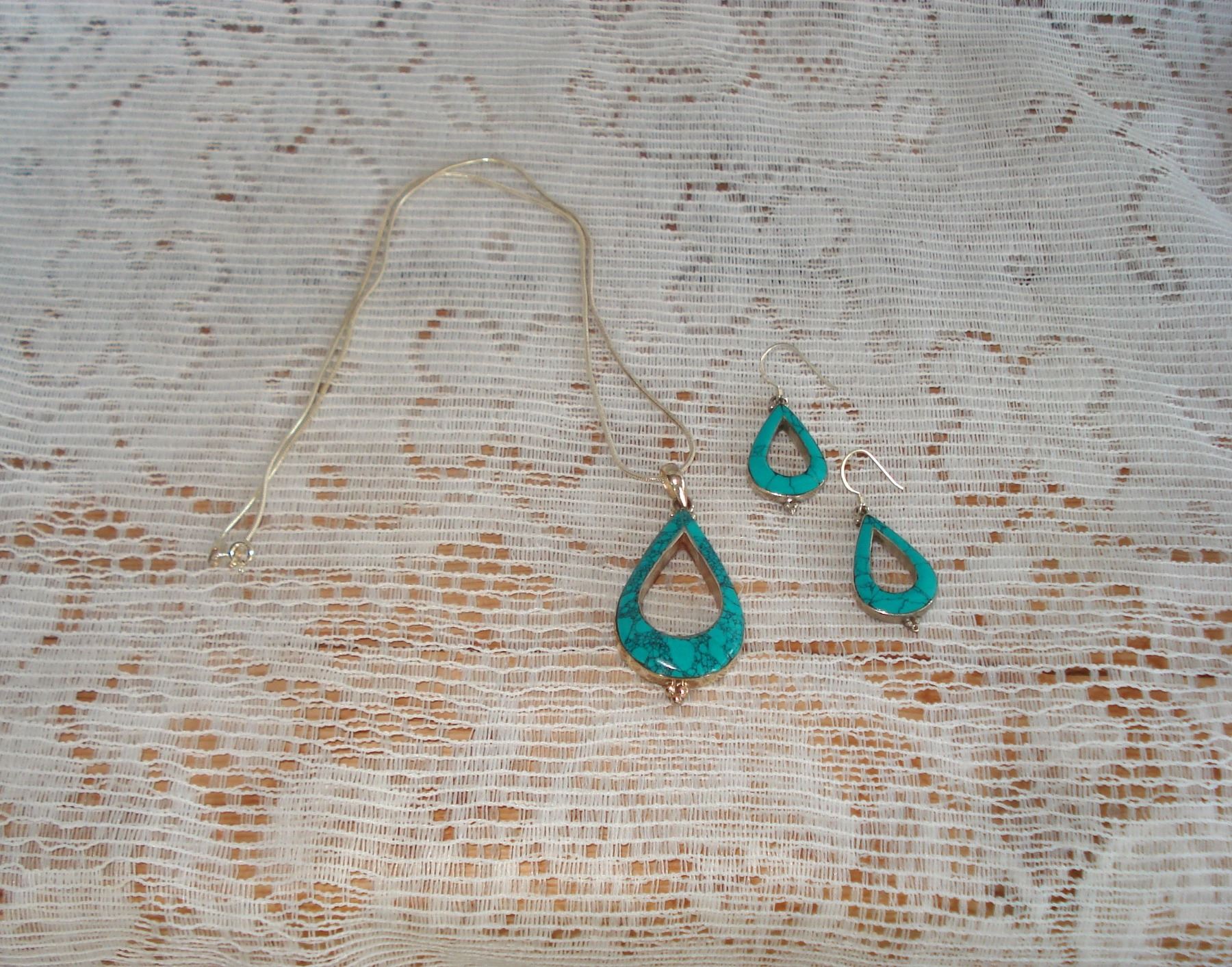 Turquoise and Silver 925 Necklace and Earring Set From National Geographic Society