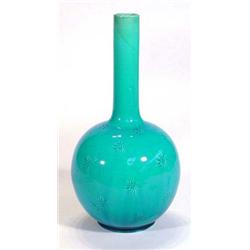 Turquoise glazed Burmantofts slender necked vase, impressed marks to base, 30cm high